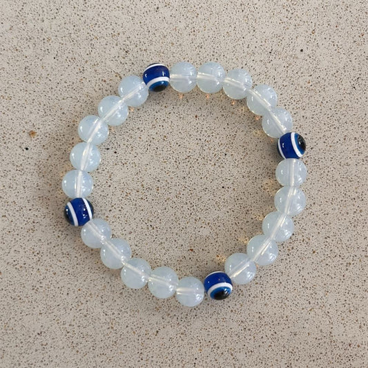 Evil Eye Beaded Stretch Bracelet, Opalite