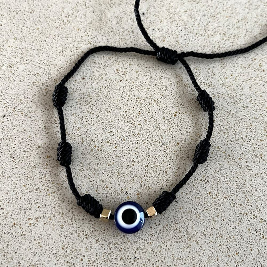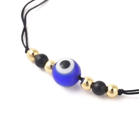 Evil Eye Nylon Thread Braided Bracelet with Black Agate Beads