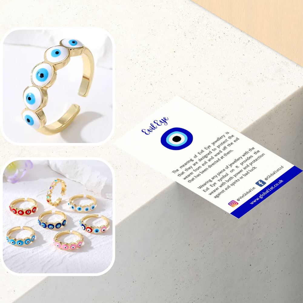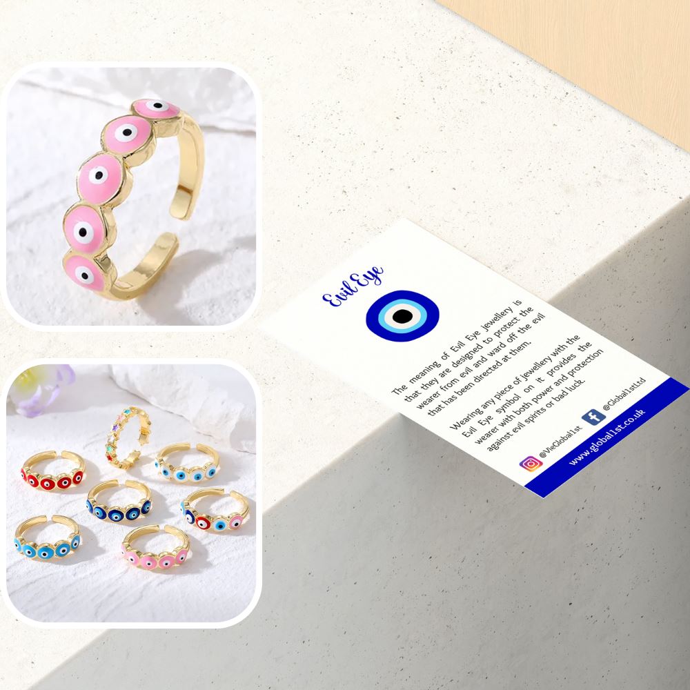 Protect yourself from negative energy with our stunning Evil Eye Ring. This captivating piece of jewelry features the iconic Evil Eye symbol, believed to ward off evil and bring good fortune. Made from high-quality materials, this ring combines style and spiritual significance. It serves as a fashionable accessory while providing you with a sense of protection and positive energy. Whether worn for everyday elegance or special occasions, our Evil Eye Ring is a beautiful reminder of the power of positivity.