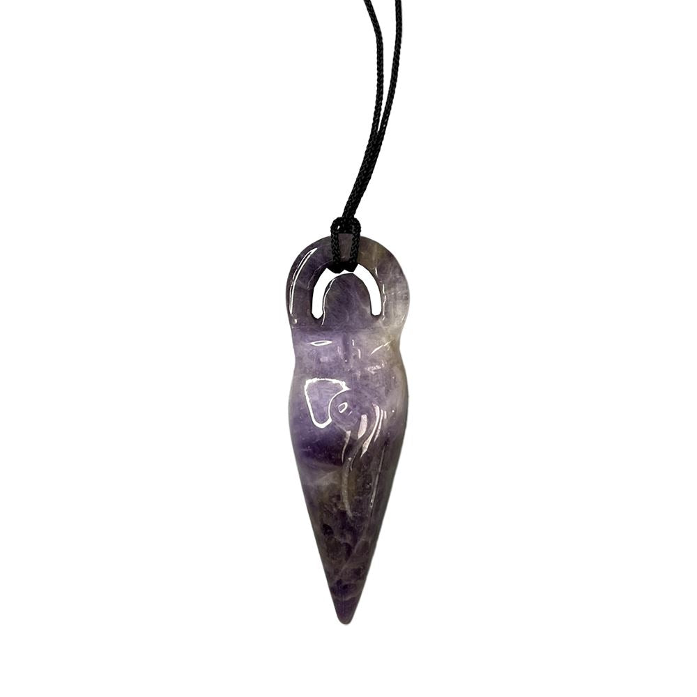 Mother Earth Goddess Pendant, 8x3cm, carved from genuine gemstones in assorted varieties. Symbolic and meaningful, ideal for spiritual retailers, gift shops, and wellness collections focused on nature and feminine energy.