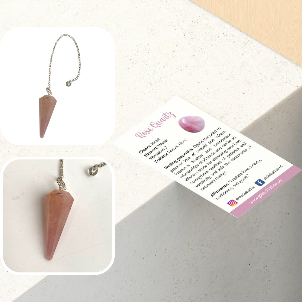 Our Pendulum with Chain has a 30mm powerful crystal stone pendant. It consists of a small stone attached to the end of a chain and is used to answer questions about life, love, money, health, relationships, and work according to its movement. A pendulum can only respond with 'yes,' 'no,' or 'maybe,' so questions need to be phrased in a way that allows for a clear answer. Pendulums are used as a form of reflection to receive guidance, awareness, and understanding. They are a very valuable tool for addressing energy-related issues and are also excellent at finding lost items.