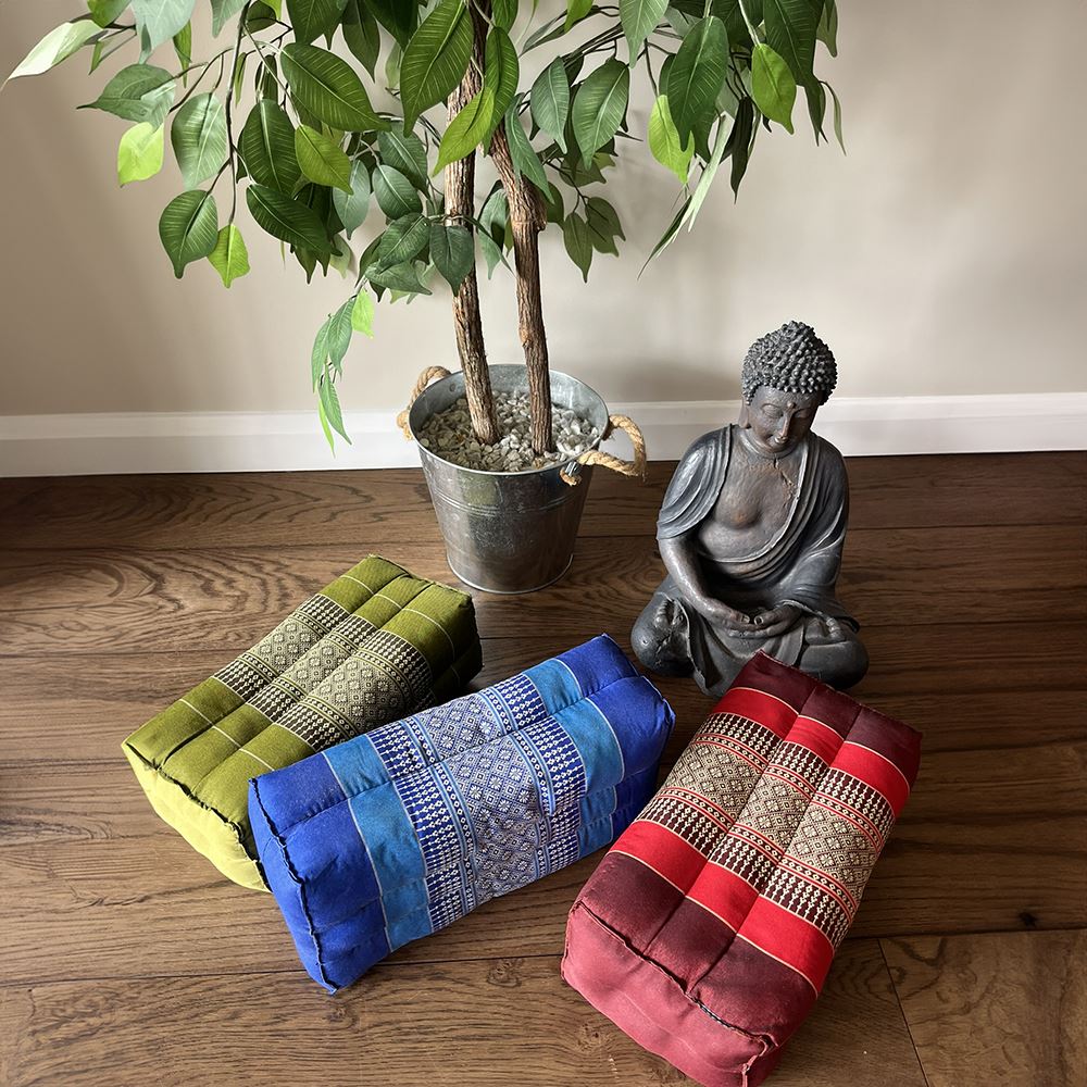 Elevate your meditation practice with our Authentic Thai Meditation Cushion. Handcrafted in Thailand, this cushion is filled with natural kapok fibres, known for their firm yet supportive feel. The traditional design, measuring 35x12x15cm, provides optimal comfort and posture support during meditation sessions. The breathable cotton cover ensures a comfortable sitting experience, while the vibrant Thai patterns add a touch of cultural authenticity to your space. Whether you're a seasoned meditator or just beginning your journey, our Kapok Meditation Cushion is an essential accessory for cultivating mindfulness and tranquillity.