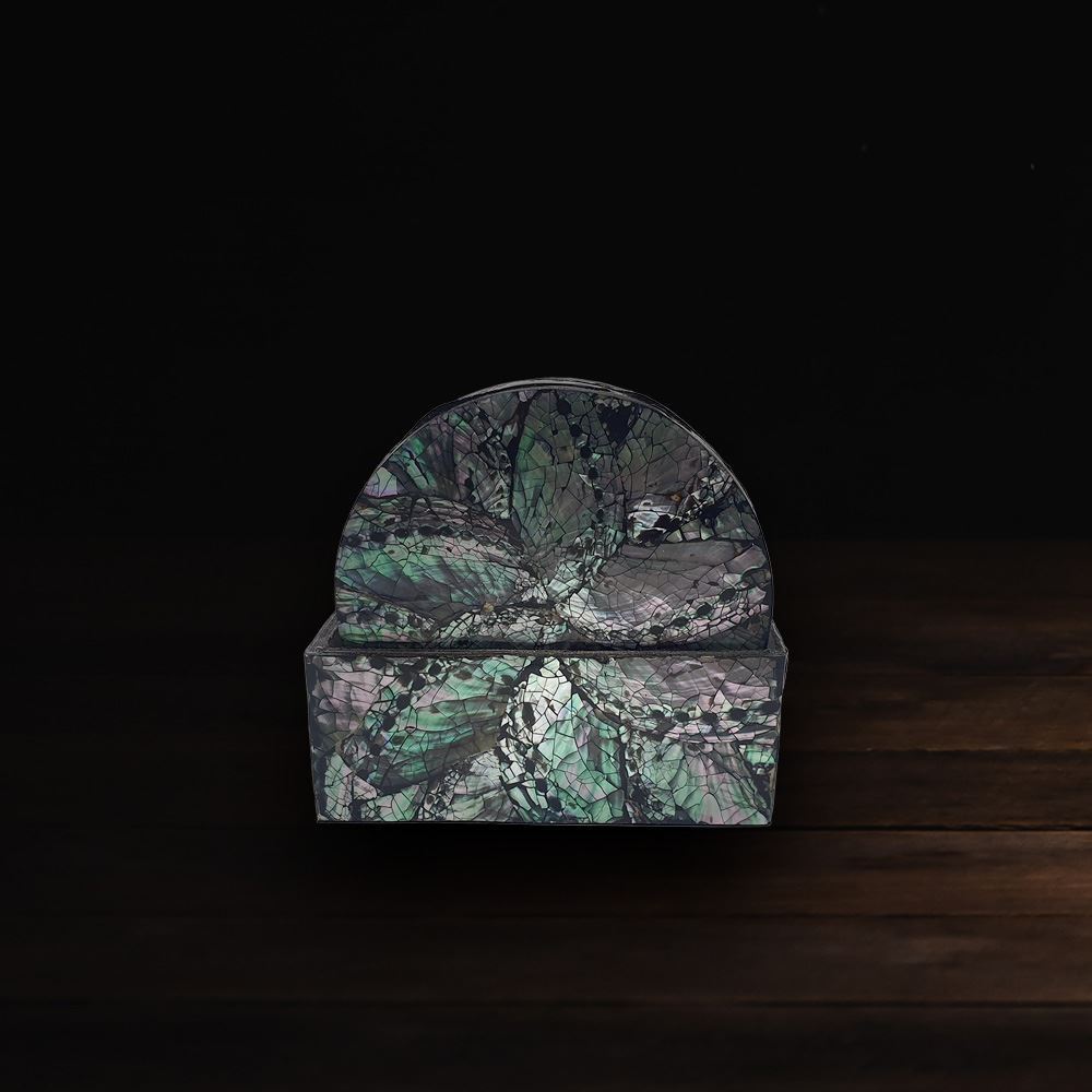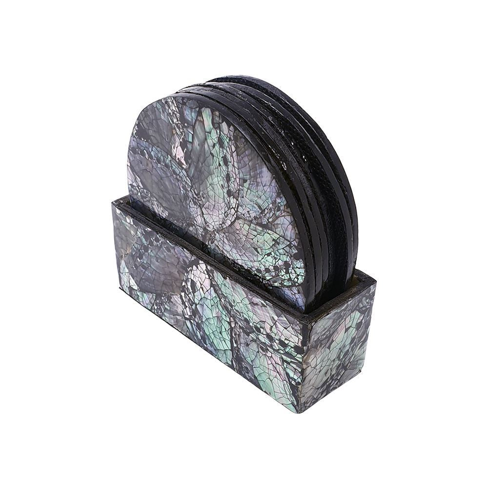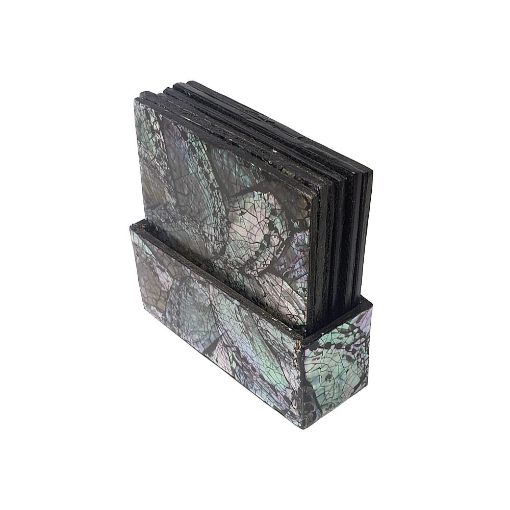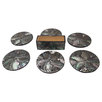 Capiz Inlay Coasters, Black/Silver, 10cm with Box, Set of 6