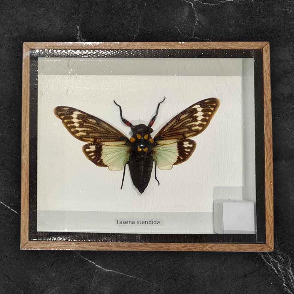 Taxidermy Cicada Blue Wing, Mounted Under Glass, 15x12.5cm