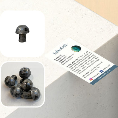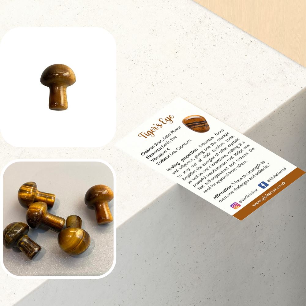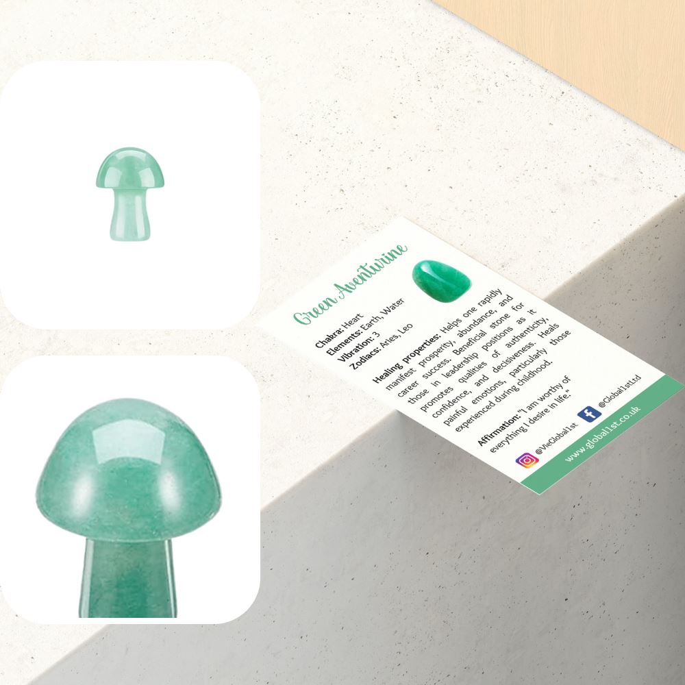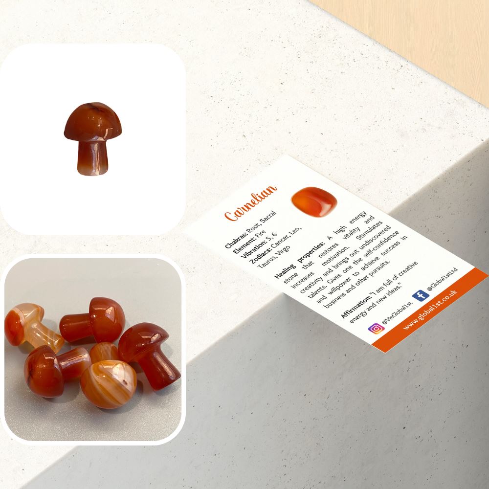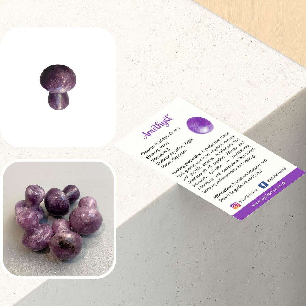 Crystal Mushroom figurines with flat bottoms for easy display. Available in a variety of gemstone options. Ideal for crystal retailers, gift shops, and nature-inspired decor collections.