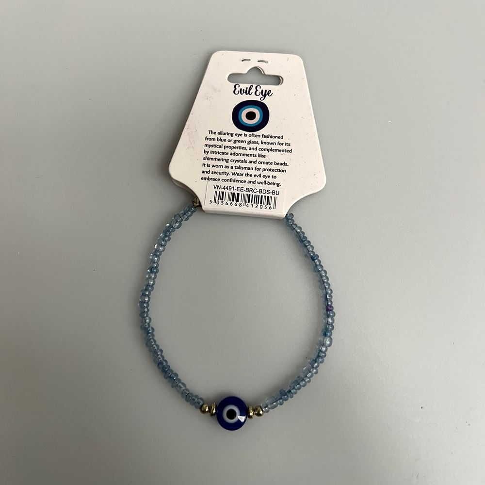 Evil Eye Bracelet with 2 Gold Beads Each Side, (JIT)