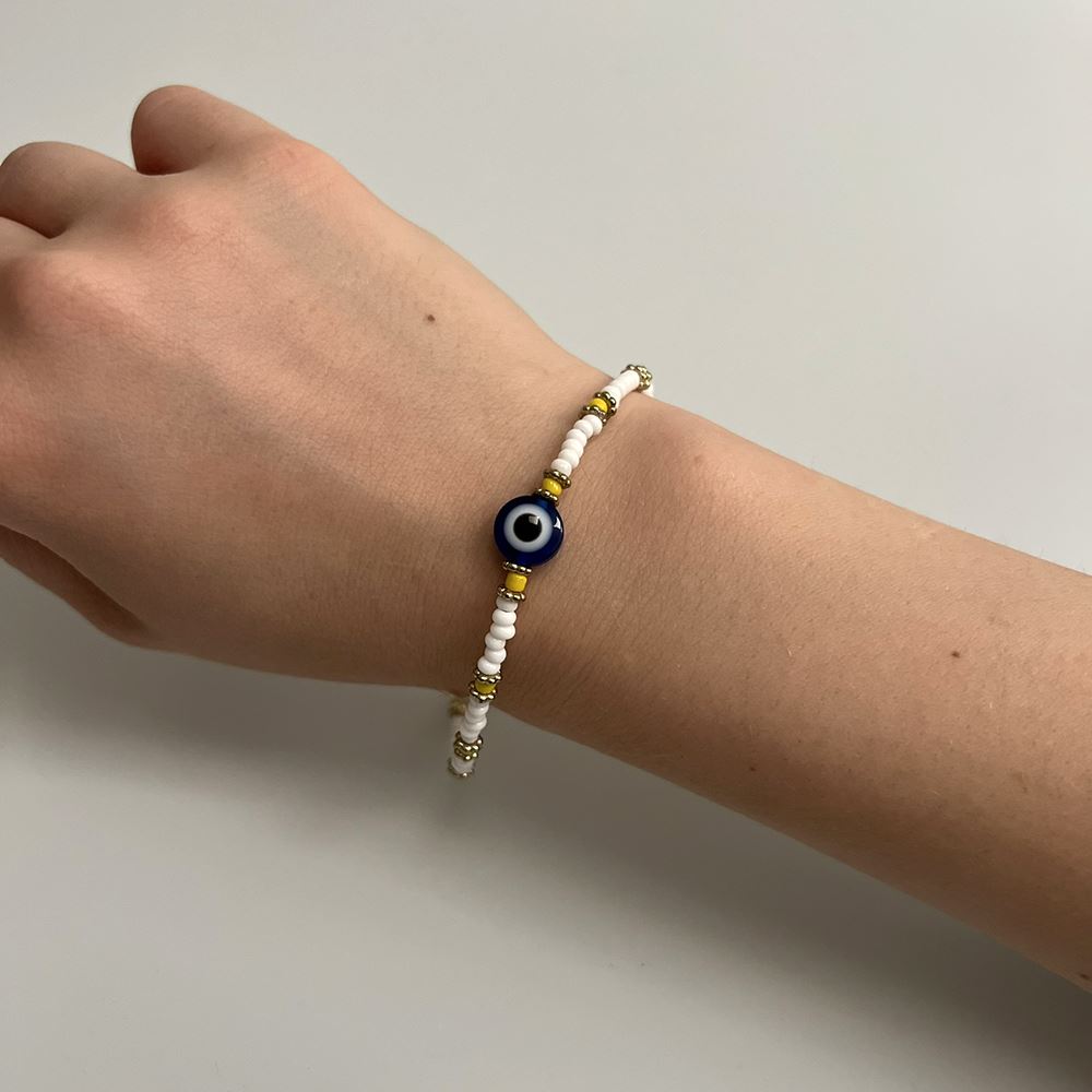 Evil Eye Bracelet, Yellow Beads, (JIT)