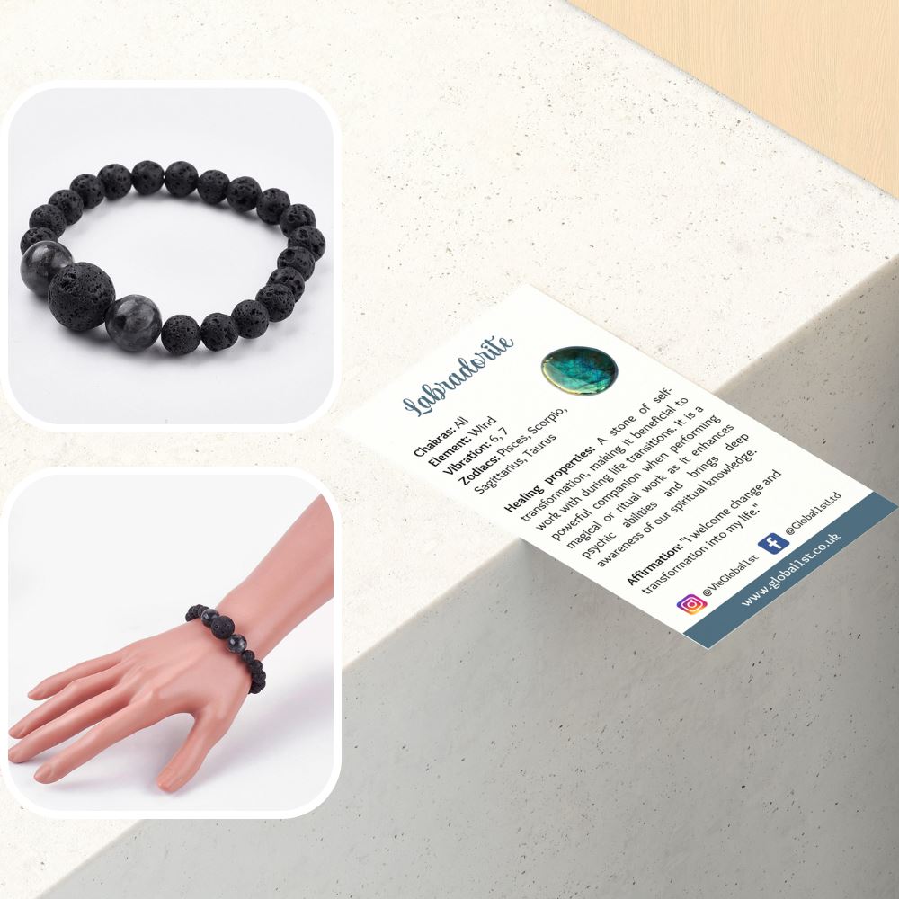 Elevate your style with the captivating charm of our Lava Rock Beads Bracelet with Labradorite. This exquisite bracelet combines the raw beauty of lava rock beads with the enchanting presence of labradorite, creating a harmonious and striking accessory. The dark, earthy allure of the lava rocks perfectly complements the iridescent beauty of labradorite. With its comfortable stretch design, it accommodates various wrist sizes, ensuring ease of wear. Embrace the elemental connection and unique style of this bracelet, ideal for any occasion.