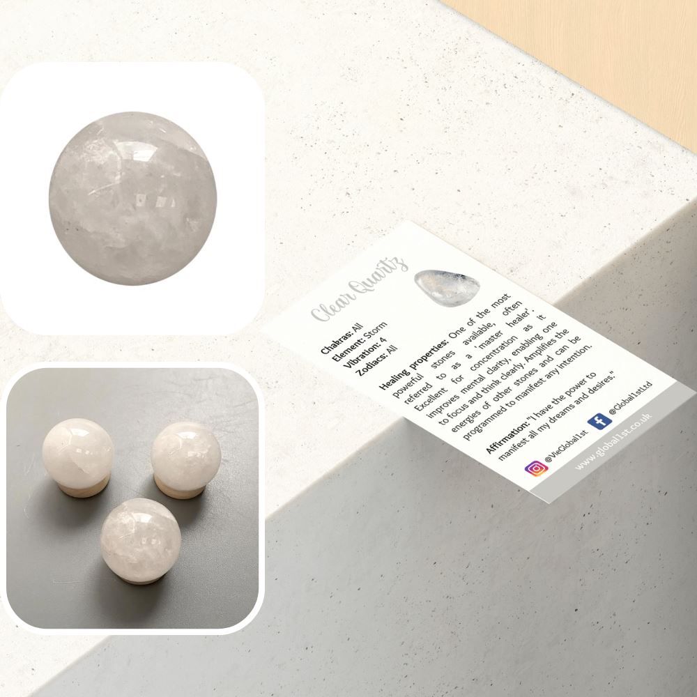 Polished Crystal Spheres in 2cm and 3cm sizes, ideal for meditation, decor, or giftware. Each handcrafted piece varies slightly due to the natural stone. Perfect stock for crystal shops, wellness retailers, and gift boutiques.