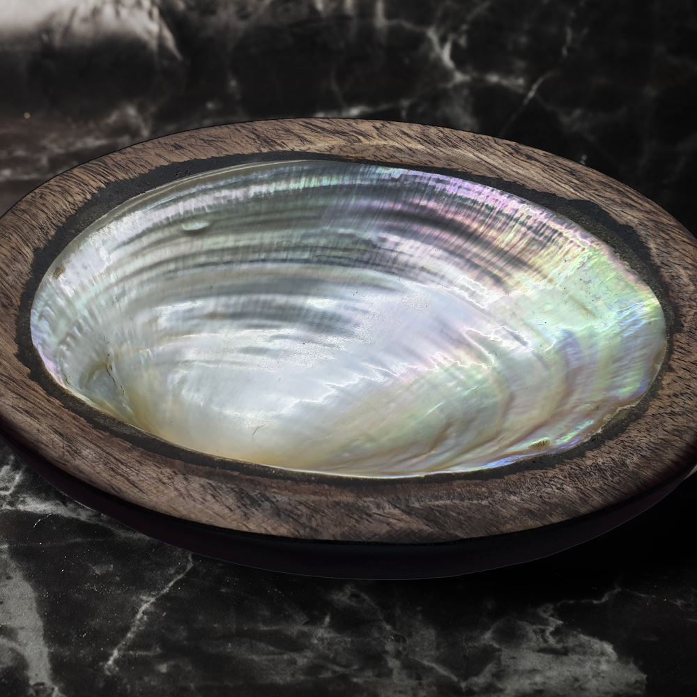 Sono Wood with Capiz Inlay Oval Dipping Bowl, 12cm
