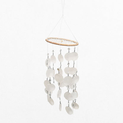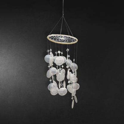 Wind Chime, 45cm Hanging Height, White Capiz Shells with Black Beads
