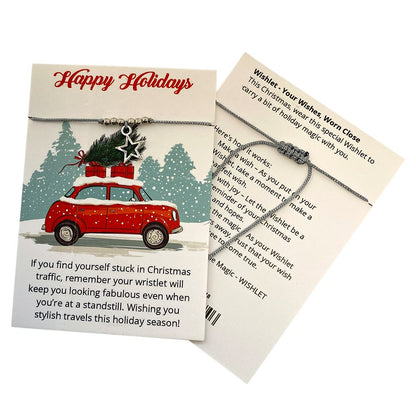Celebrate the festive season with our special Christmas-themed Wish Wristlet! Each wristlet features a unique holiday design paired with a meaningful message on the front, while the back provides simple instructions for making a wish. As you put on your Wish Wristlet, take a moment to make a heartfelt wish and let it be a daily reminder of holiday magic. With various illustrations and wristlet designs to choose from, there’s a perfect style for everyone this Christmas season. Explore our other Wish Wristlet themes for more occasions!