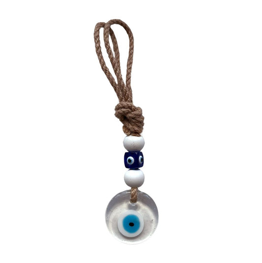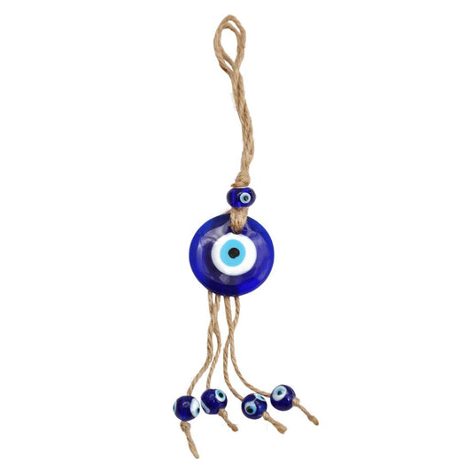 Evil Eye Hanging with a Hemp Rope and a Round Flat Glass