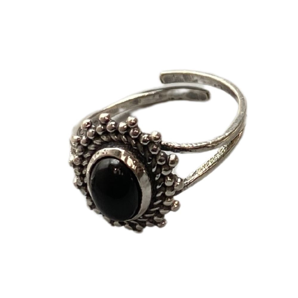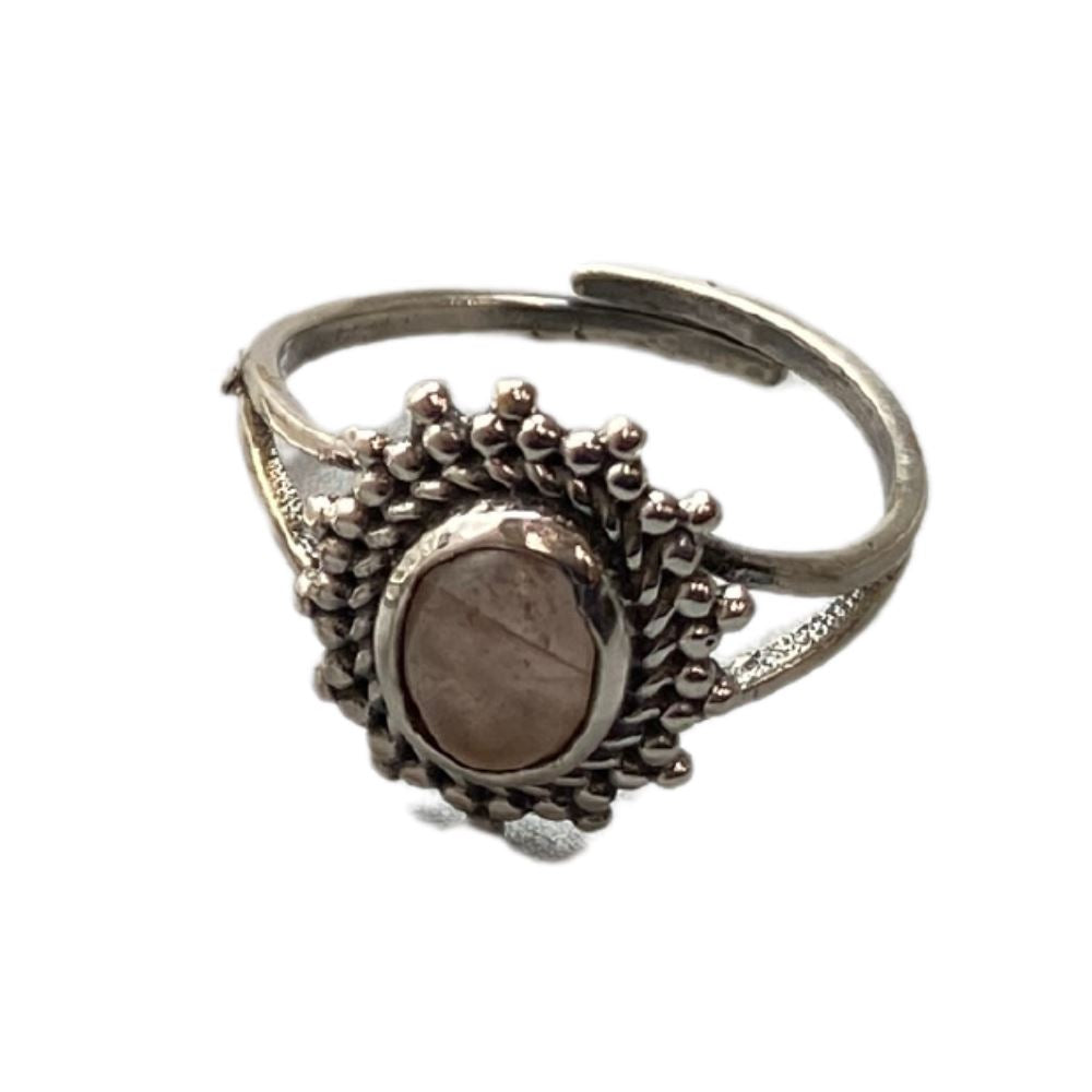 Silver-Plated Adjustable Ring with 0.5cm natural gemstone. Ethically handcrafted with selectable designs and stones. Ideal for jewellery retailers and wellness shops seeking elegant, intentional pieces.