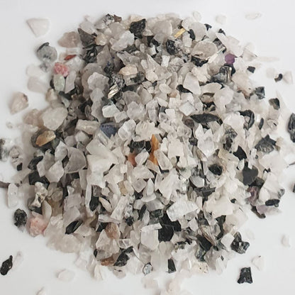 Embrace the beauty of gemstone craftsmanship with our Crystal Sand Jar, a mesmerising collection of tiny shards created during the shaping and polishing of gemstones. Available in a variety of gemstones, this 200g jar is perfect for creative and decorative purposes, bringing a touch of elegance and positive energy to your space. Ideal for use in jewellery-making, candle or resin art, plant decor, meditation, or creating stunning displays in bowls and jars, this versatile sand invites endless possibilities. As these pieces are sold by weight, the number of shards received will vary. Each fragment showcases unique variations in shape, size, colour, and pattern, making every jar a distinctive treasure.