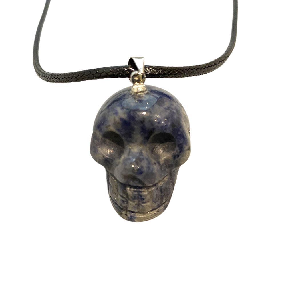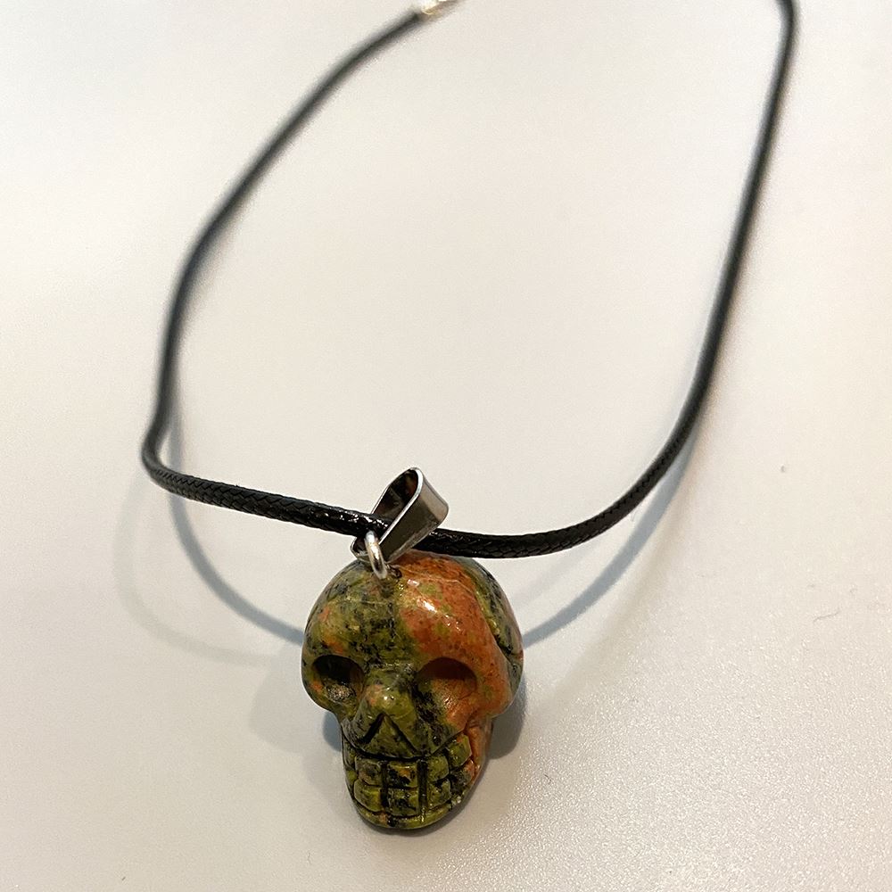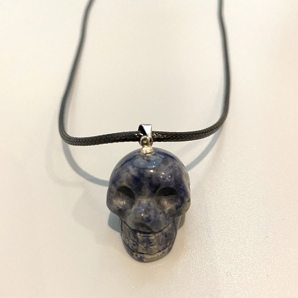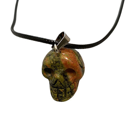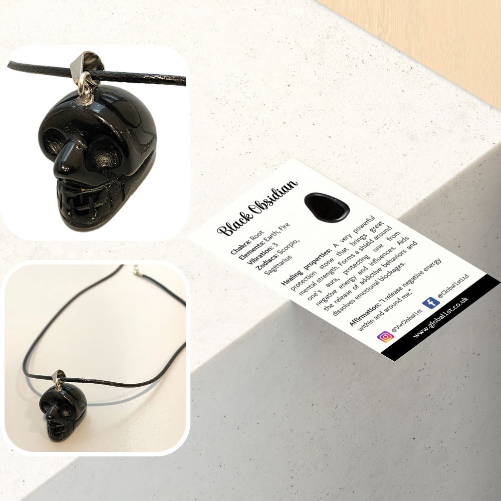 Channel mystery, transformation, and spiritual awareness with our Crystal Skull Head Pendant, paired with a durable black cord. Carefully crafted from natural gemstones, each pendant features a detailed skull design, symbolising wisdom, protection, and a deeper connection to the spiritual realm. Measuring approximately 3-4cm, this bold pendant is versatile for daily wear or as a unique addition to your jewellery collection. The black cord adds a sleek, understated touch, making it perfect for any outfit or occasion.
