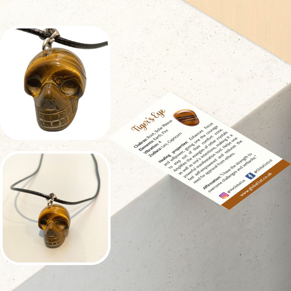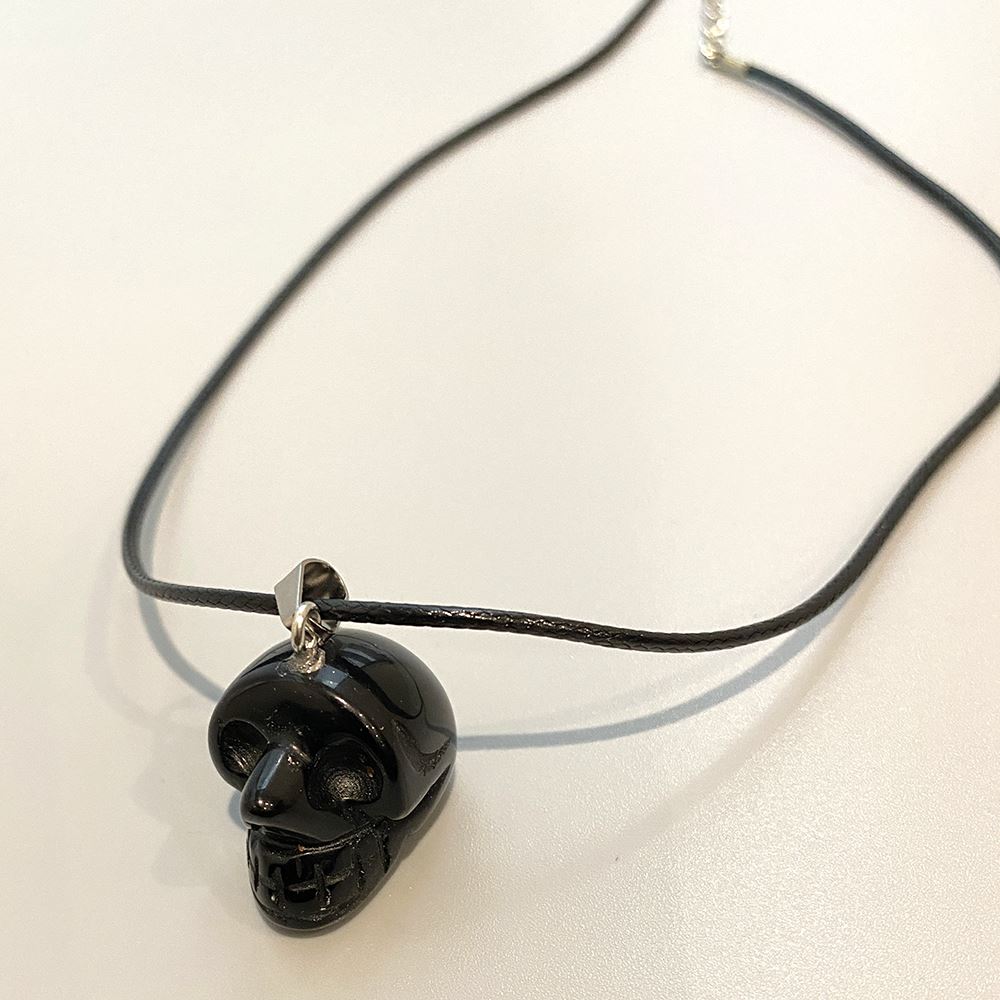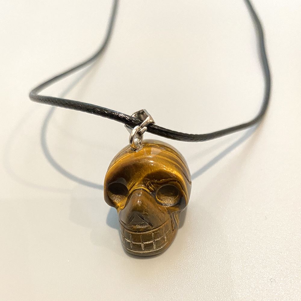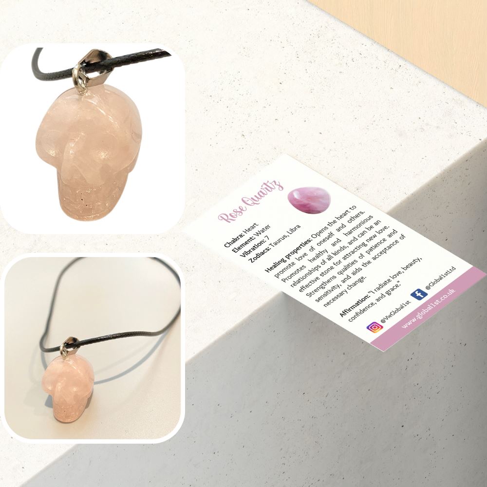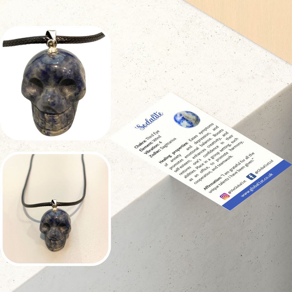 Channel mystery, transformation, and spiritual awareness with our Crystal Skull Head Pendant, paired with a durable black cord. Carefully crafted from natural gemstones, each pendant features a detailed skull design, symbolising wisdom, protection, and a deeper connection to the spiritual realm. Measuring approximately 3-4cm, this bold pendant is versatile for daily wear or as a unique addition to your jewellery collection. The black cord adds a sleek, understated touch, making it perfect for any outfit or occasion.