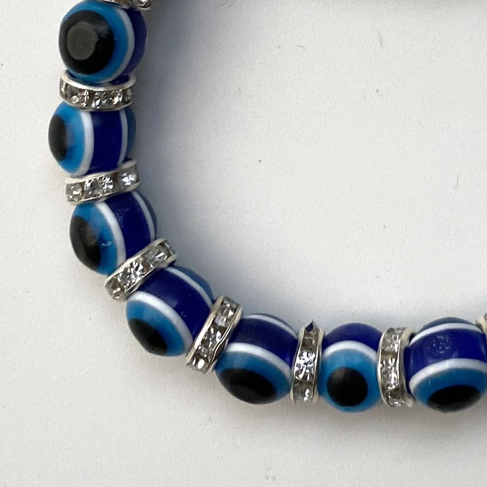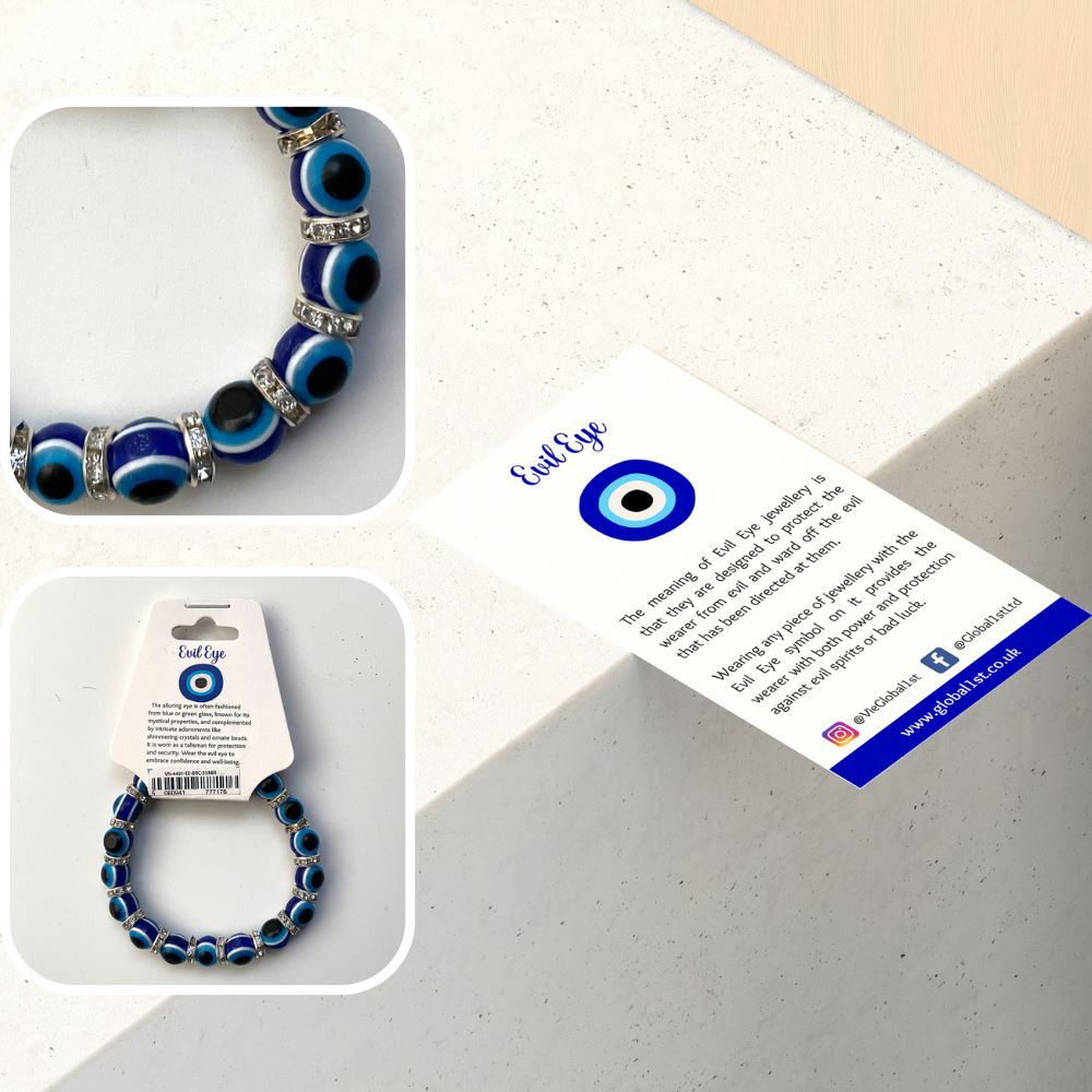 Enhance your wrist with our exquisite Evil Eye Bracelet crafted with resin beads. Each bead is adorned with intricate evil eye motifs, believed to bring protection and ward off negative energy. The resin beads offer a smooth texture and vibrant colour, adding a touch of charm to any outfit. Whether worn solo or paired with other bracelets, this piece is a stylish and symbolic accessory for any occasion.