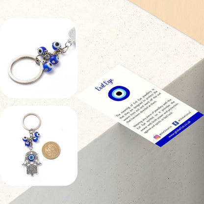 Evil Eye Hamsa Hand Keychain combining two protective symbols in one best-selling design. With metal detailing and multiple glass beads, it’s ideal for tills, gift sections, and spiritual collections.