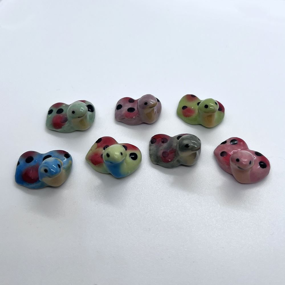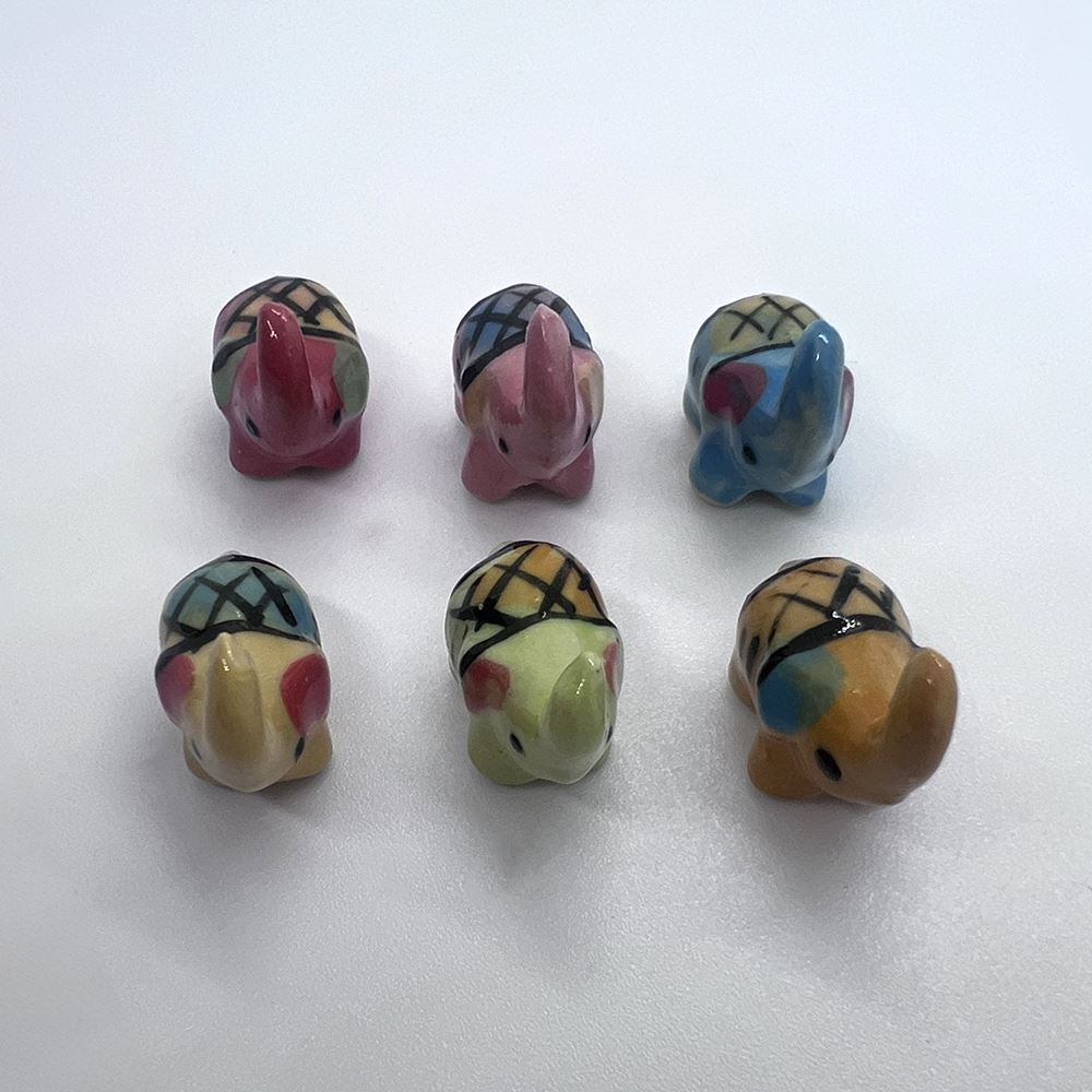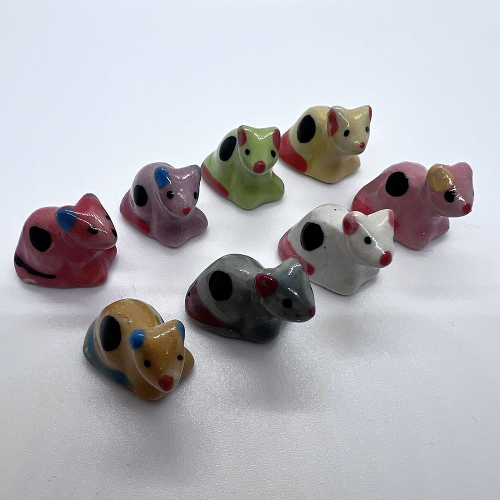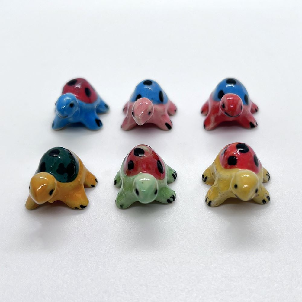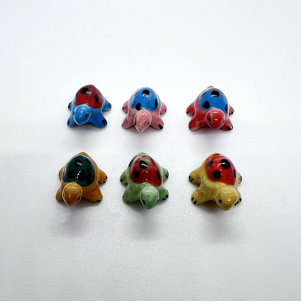 Hand-painted Mini Ceramic Animals, approx. 2cm, available in assorted vibrant colours and designs. Each piece is unique due to individual craftsmanship. Ideal stock for gift boutiques, garden centres, and home décor shops.