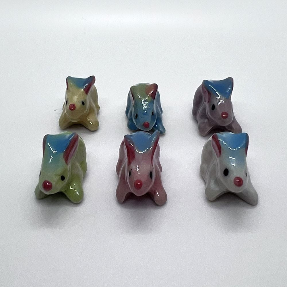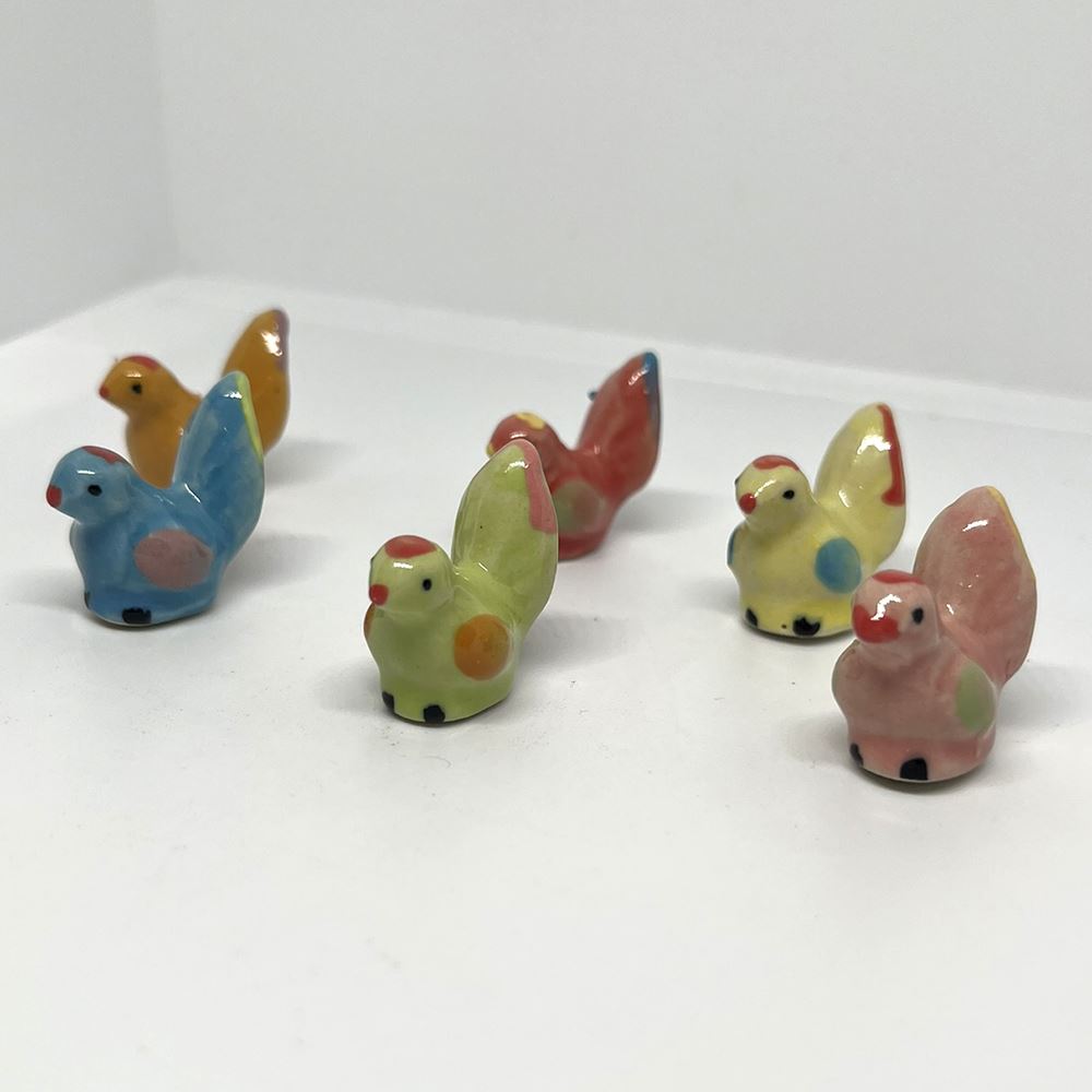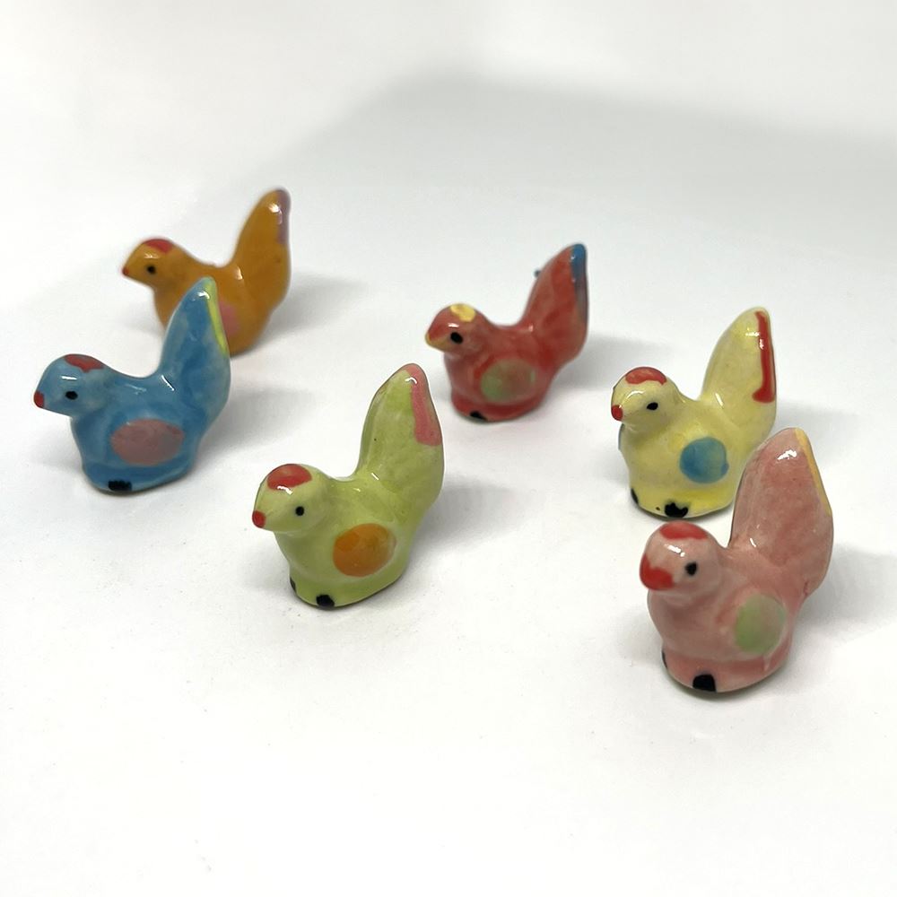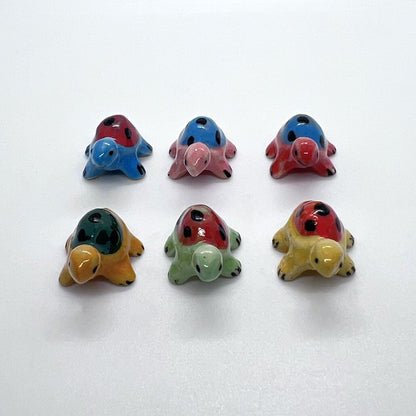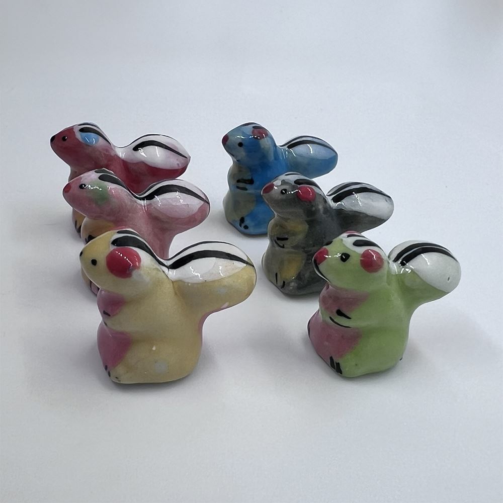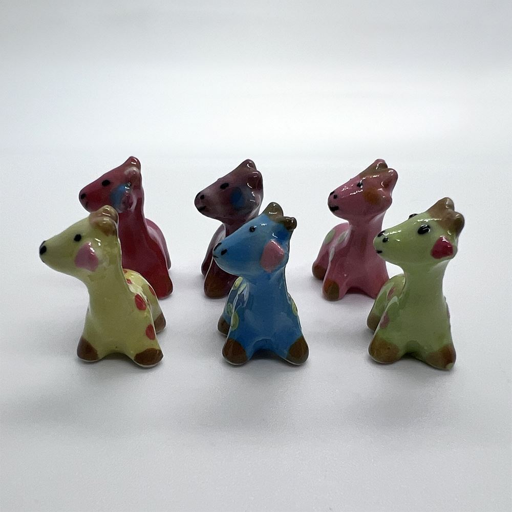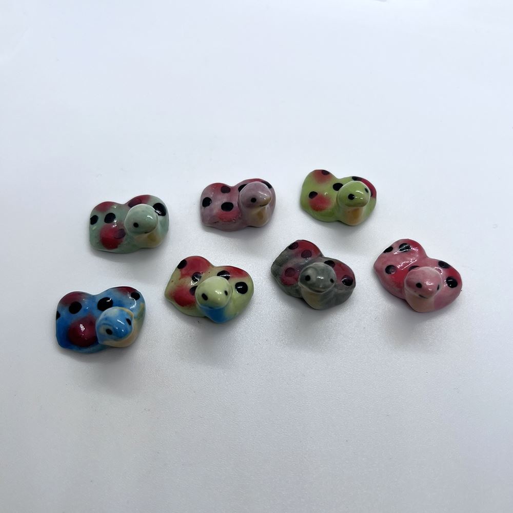 Hand-painted Mini Ceramic Animals, approx. 2cm, available in assorted vibrant colours and designs. Each piece is unique due to individual craftsmanship. Ideal stock for gift boutiques, garden centres, and home décor shops.