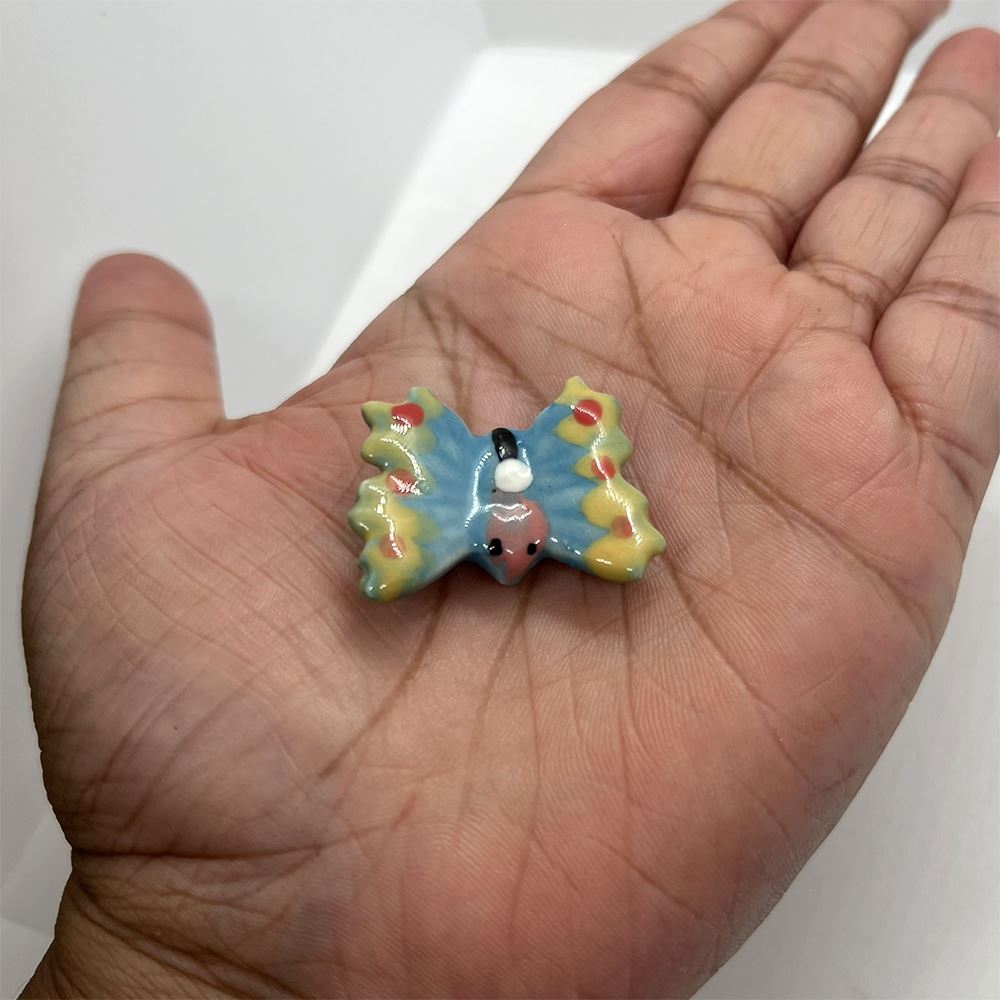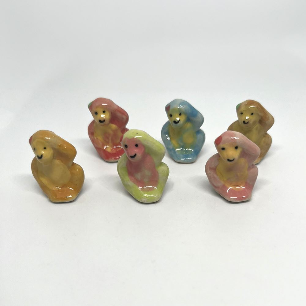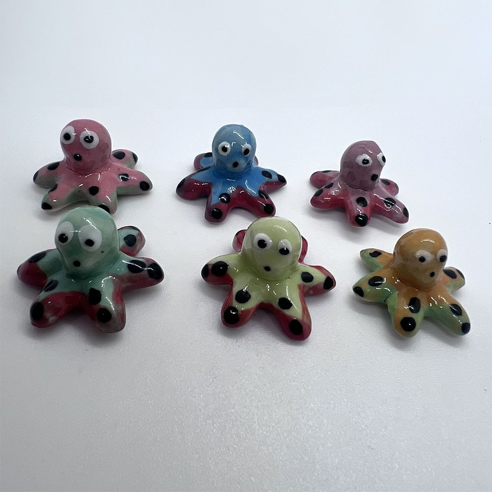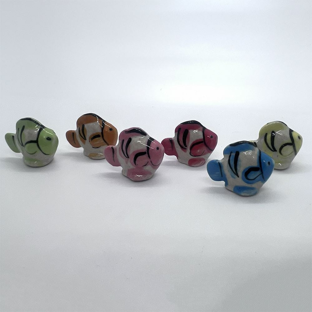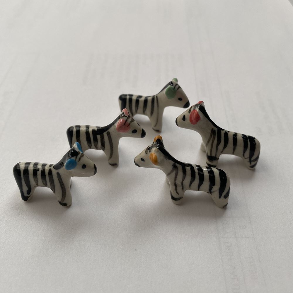 Hand-painted Mini Ceramic Animals, approx. 2cm, available in assorted vibrant colours and designs. Each piece is unique due to individual craftsmanship. Ideal stock for gift boutiques, garden centres, and home décor shops.