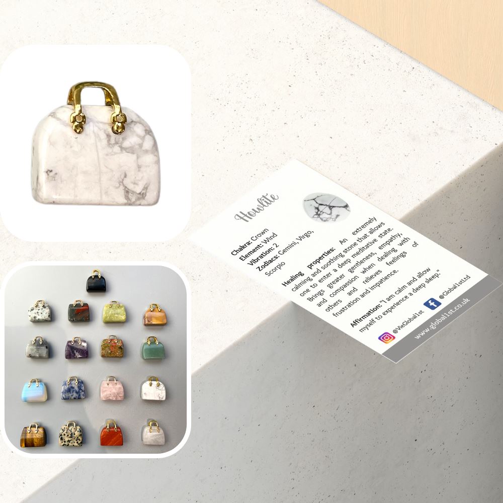 Mini Crystal Handbags, 2-2.5cm, Howlite