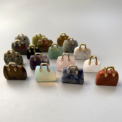Mini Crystal Handbags (approx. 2�2.5cm), hand-carved from natural gemstones. Each piece features unique variations in colour and texture, reflecting the beauty of natural stone. Ideal for crystal shops, gift retailers, and decor collections.