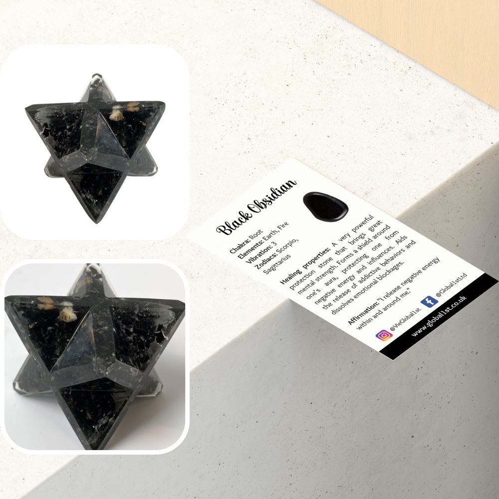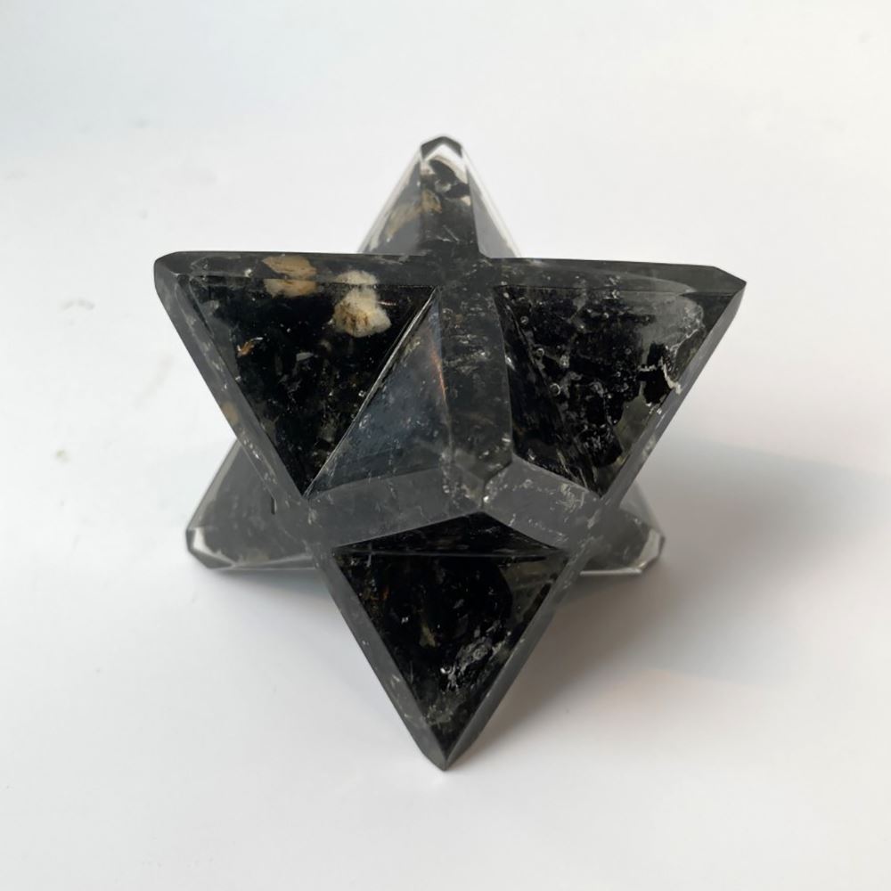 The Merkaba Star is used for transmuting negative energy to positive vibrations, thus protecting the aura from unwanted energies. Also, aid with grief and help us to overcome bad habits and obsessions. The word Merkaba is composed of three separate words: Mer, which means light, Ka, which means spirit and Ba, which means body. It essentially refers to a way of connecting with light, body, and spirit through the means of this 'vehicle'. Each handcrafted Crystal Merkaba Star is 5x5x5cm approx. Please note that these are handmade and therefore may have some natural imperfections.