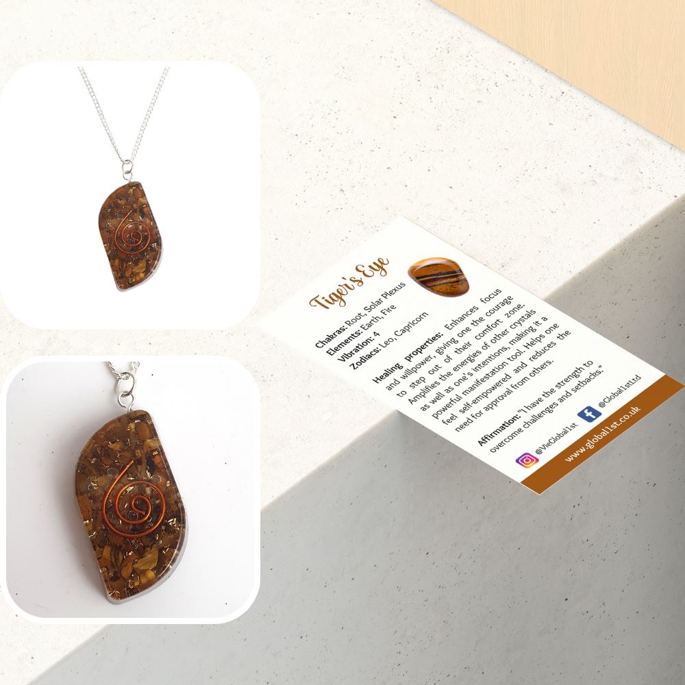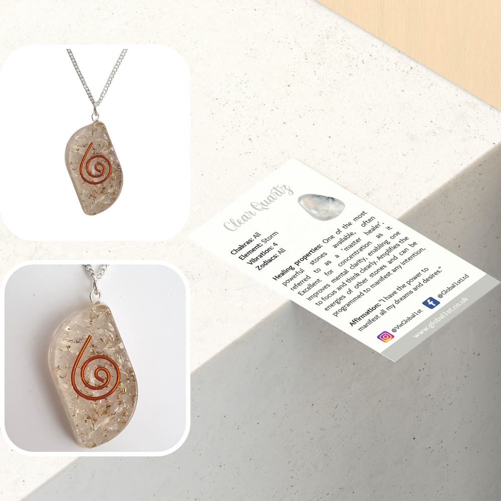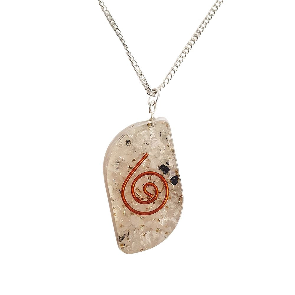 Orgonite Reiki Leaf Pendant (4x2cm) crafted from gemstone and orgonite resin. Each piece radiates positive energy and is ideal for spiritual shops, wellness boutiques, and jewellery retailers.