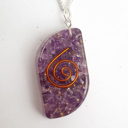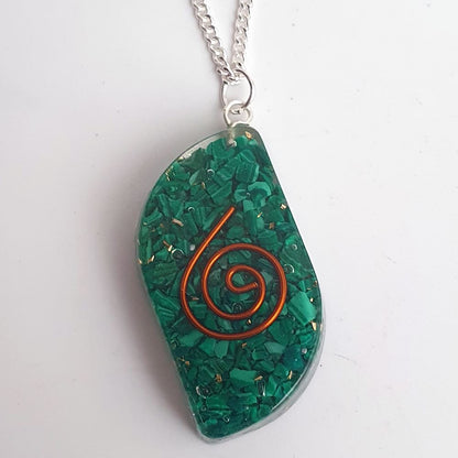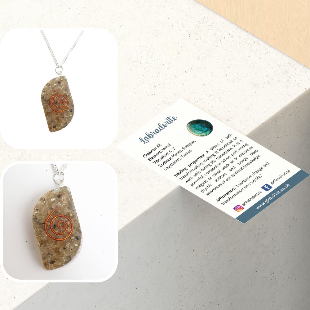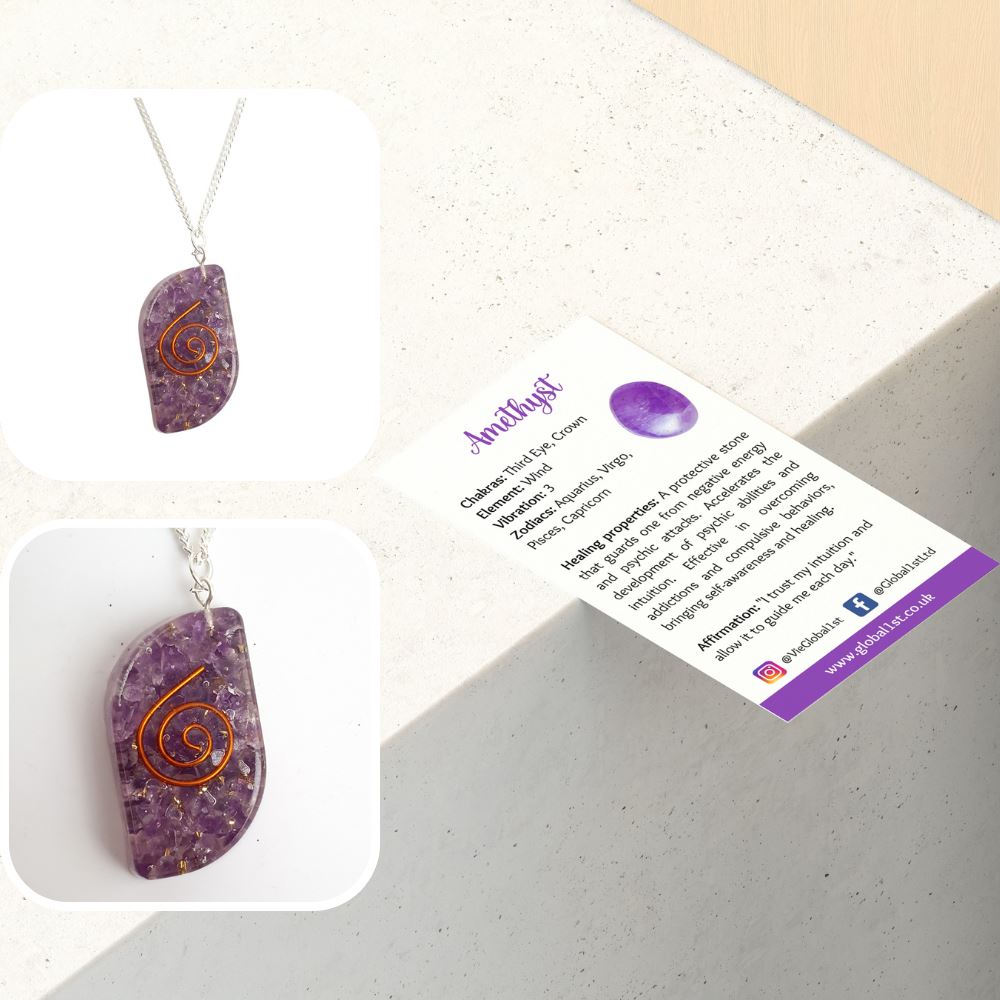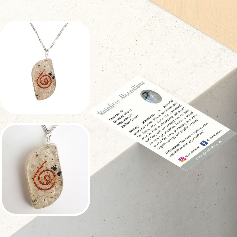 Orgonite Reiki Leaf Pendant (4x2cm) crafted from gemstone and orgonite resin. Each piece radiates positive energy and is ideal for spiritual shops, wellness boutiques, and jewellery retailers.