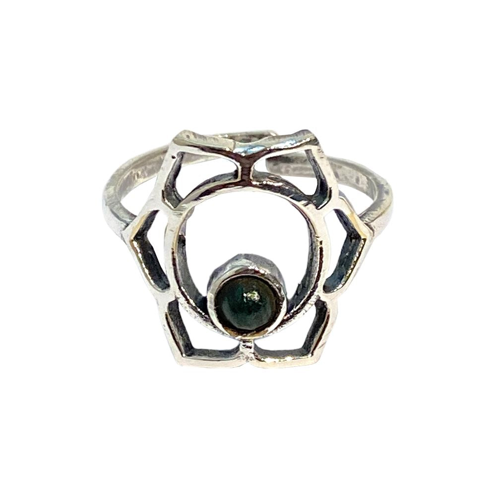 Silver-Plated Adjustable Ring with 0.5cm natural gemstone. Ethically handcrafted with selectable designs and stones. Ideal for jewellery retailers and wellness shops seeking elegant, intentional pieces.