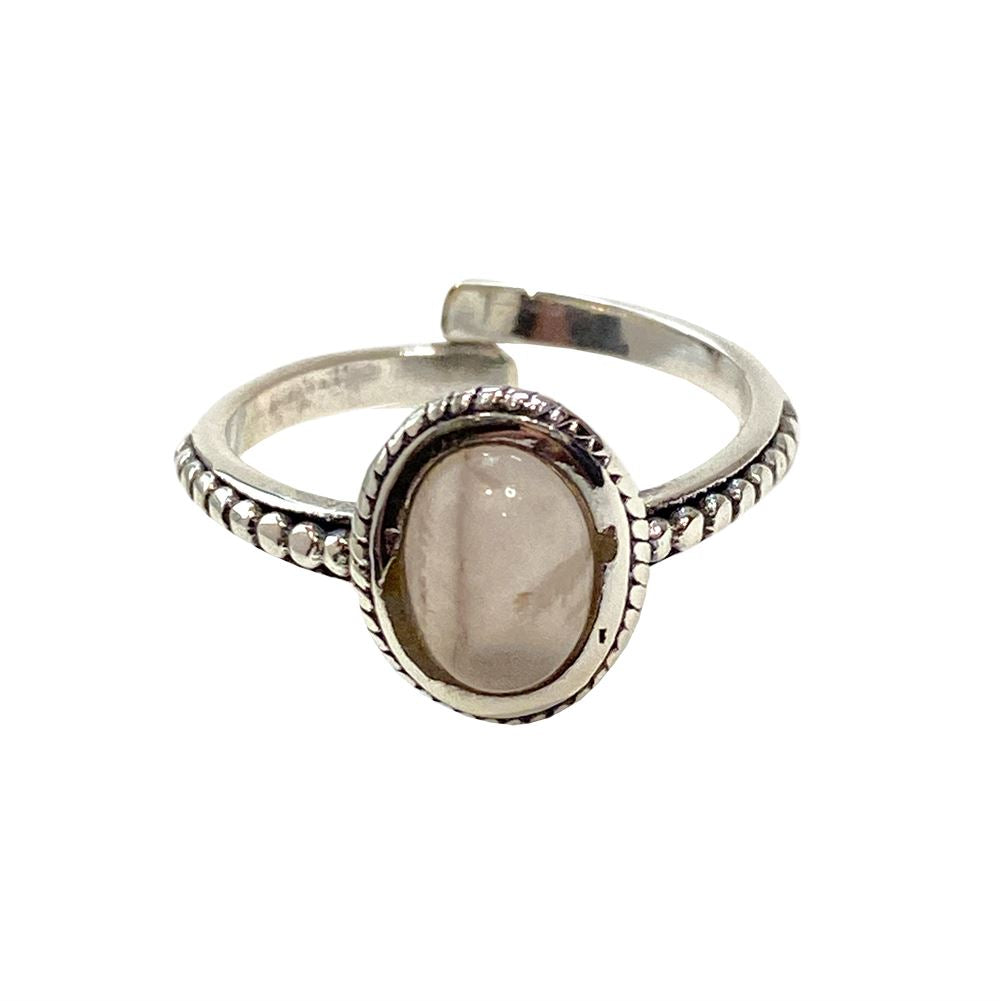 Silver-plated adjustable rings available in multiple designs and gemstone options, including Rose Quartz, Amethyst, Malachite, Turquoise, Black Onyx, and Opalite. Ideal for jewellery shops and gift retailers looking to offer customisable selections.