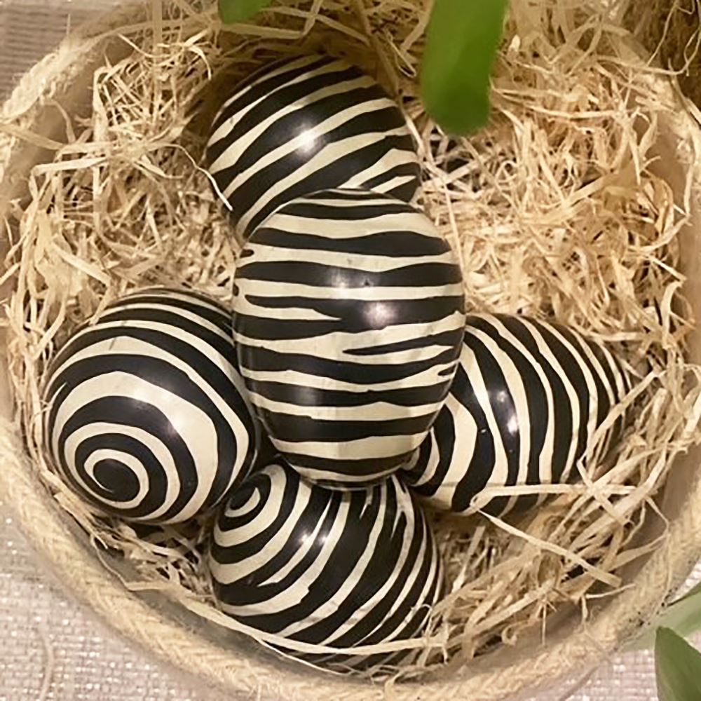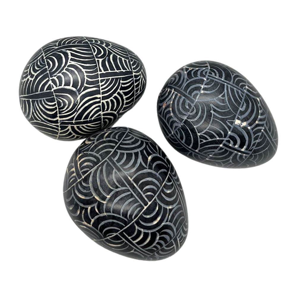 Enhance your décor with the captivating designs of our Soapstone Eggs. Crafted from high-quality soapstone, each egg features a smooth and polished surface adorned with intricate hand-painted designs. With a variety of captivating patterns and colours to choose from, these painted soapstone eggs add a unique and artistic touch to any space. About the size of a standard chicken egg or slightly smaller, display them on shelves, desks, or tabletops to elevate your interior with their charm and beauty.