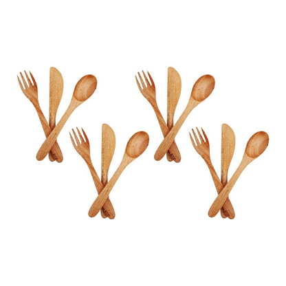 Mahogany Cutlery (Spoon, Knife, Fork), 16cm, 4 Sets