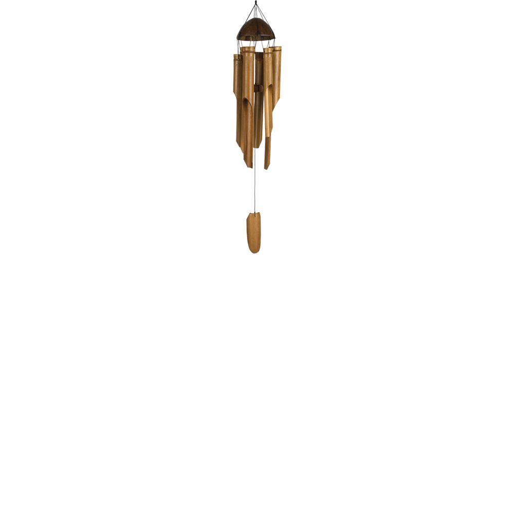 Wind Chimes 25cm with beautiful sound. Bamboo tubes are hand-tuned for a warm relaxing tone. Handmade with love in Bali. The chimes are hand-cut from locally grown bamboo, and the crown is made from a locally grown coconut. The coconut and the bamboo are varnished to make them suitable for outdoor use. The string is synthetic so that it does not rot. Make your backyard an oasis! Hanging Height: 70cm