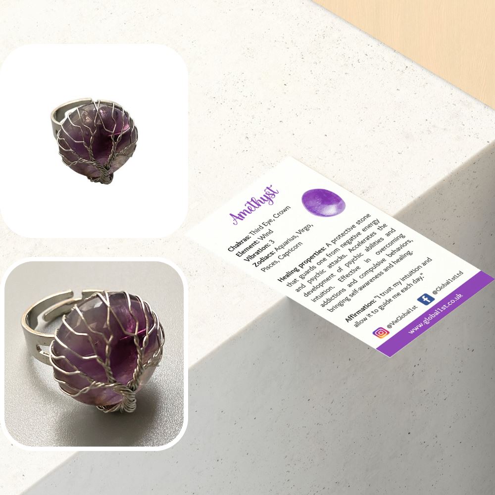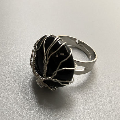 Reach a new level of timeless glamour with our Wire Wrapped Tree of Life Ring, 2cm. Its contemporary and modern design makes it perfect and versatile to be worn on any occasion. This ring combines a gemstone with a tree of life shape. The wire-wrapped tree of life is like a tree root firmly rooted in the earth, with branches and leaves, symbolizing a strong family and implying endless life. Natural stones might vary slightly in colour and inclusions, making every piece truly unique.