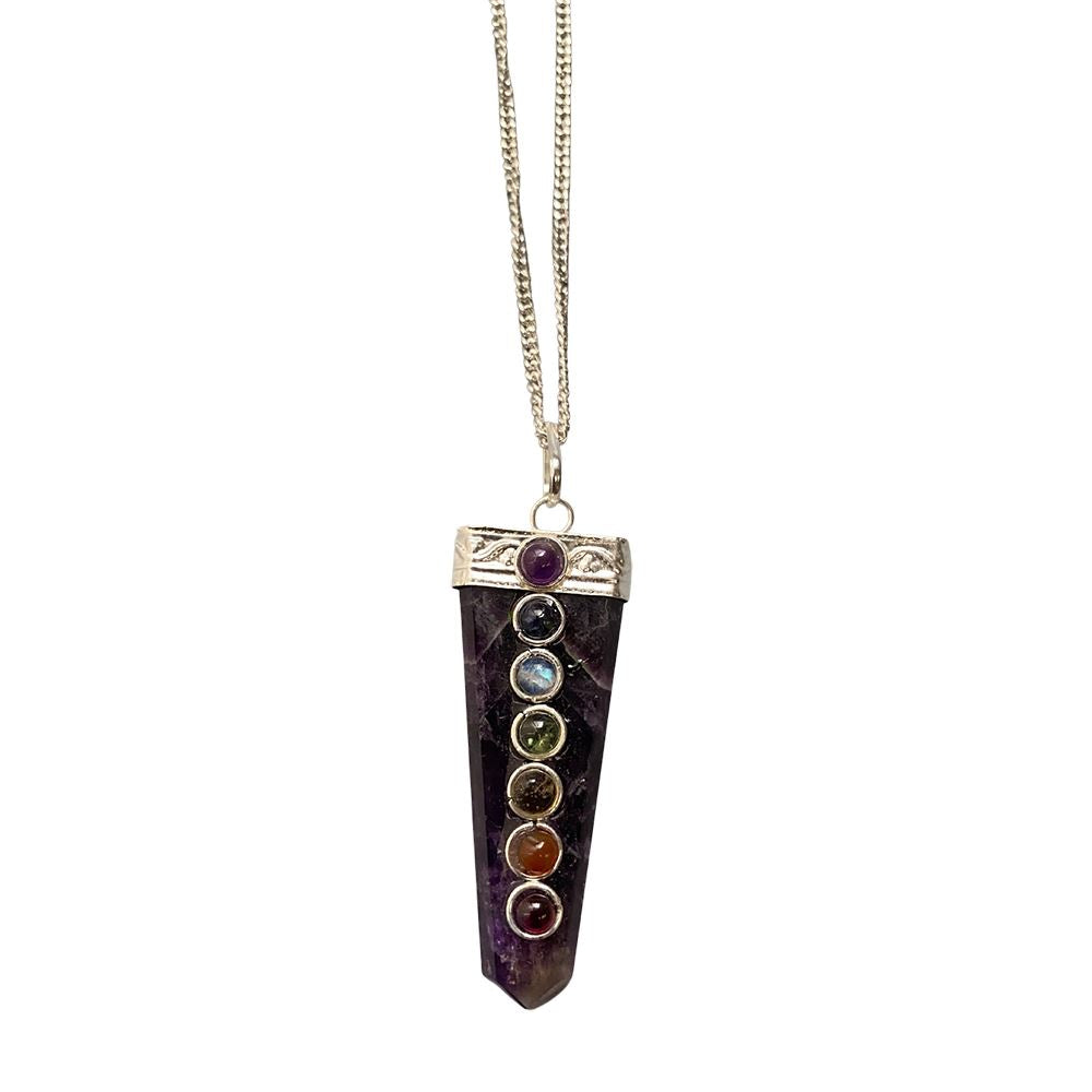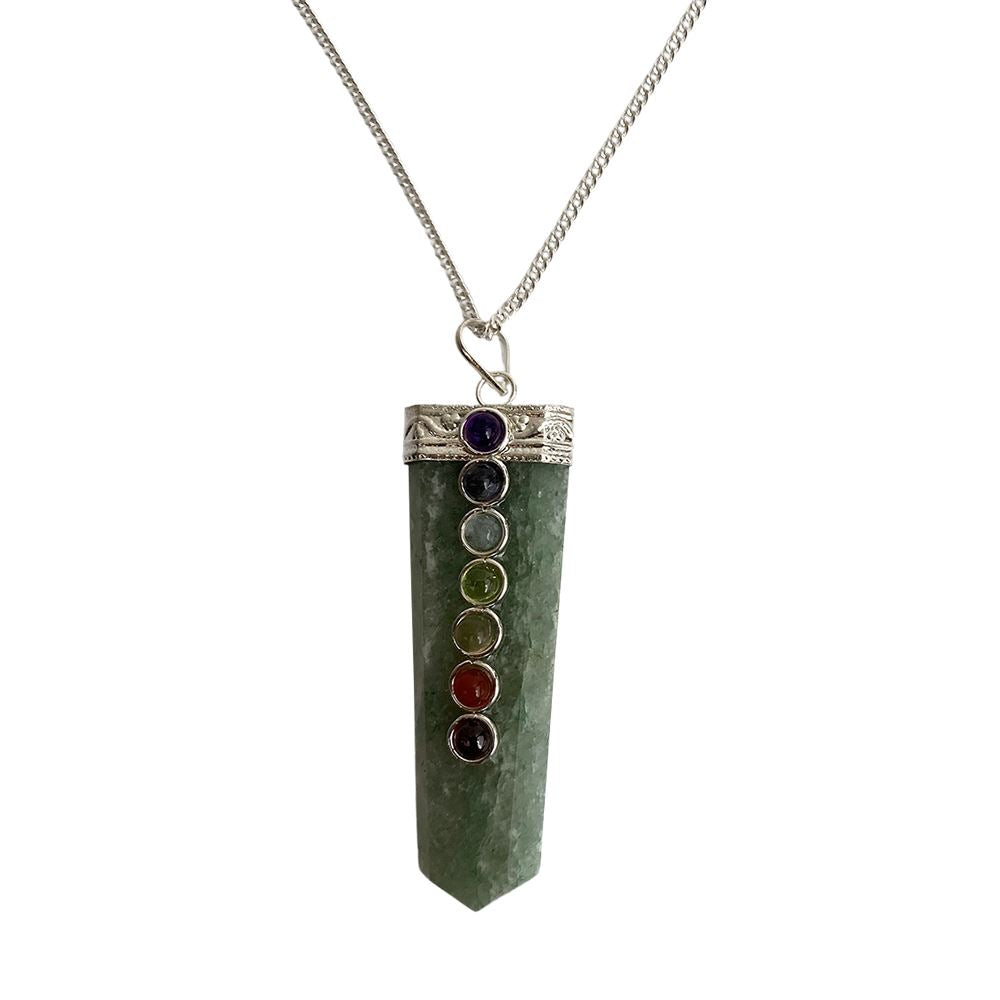 7 Chakra Flat Pendant, Silver Chain, 5x1.5cm