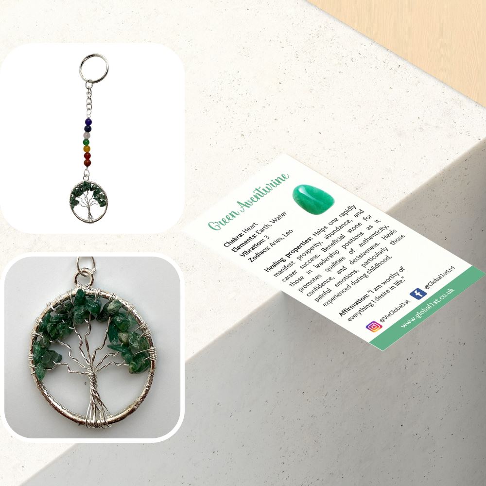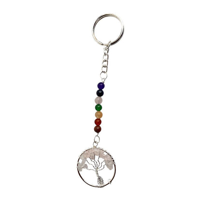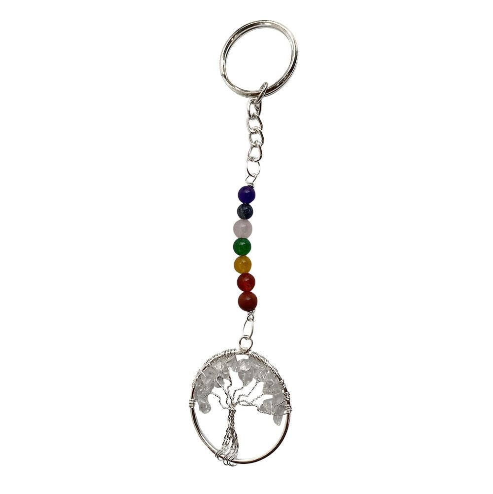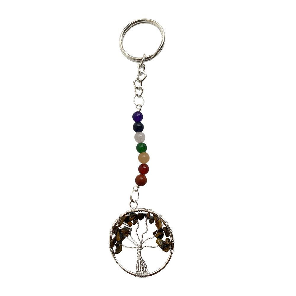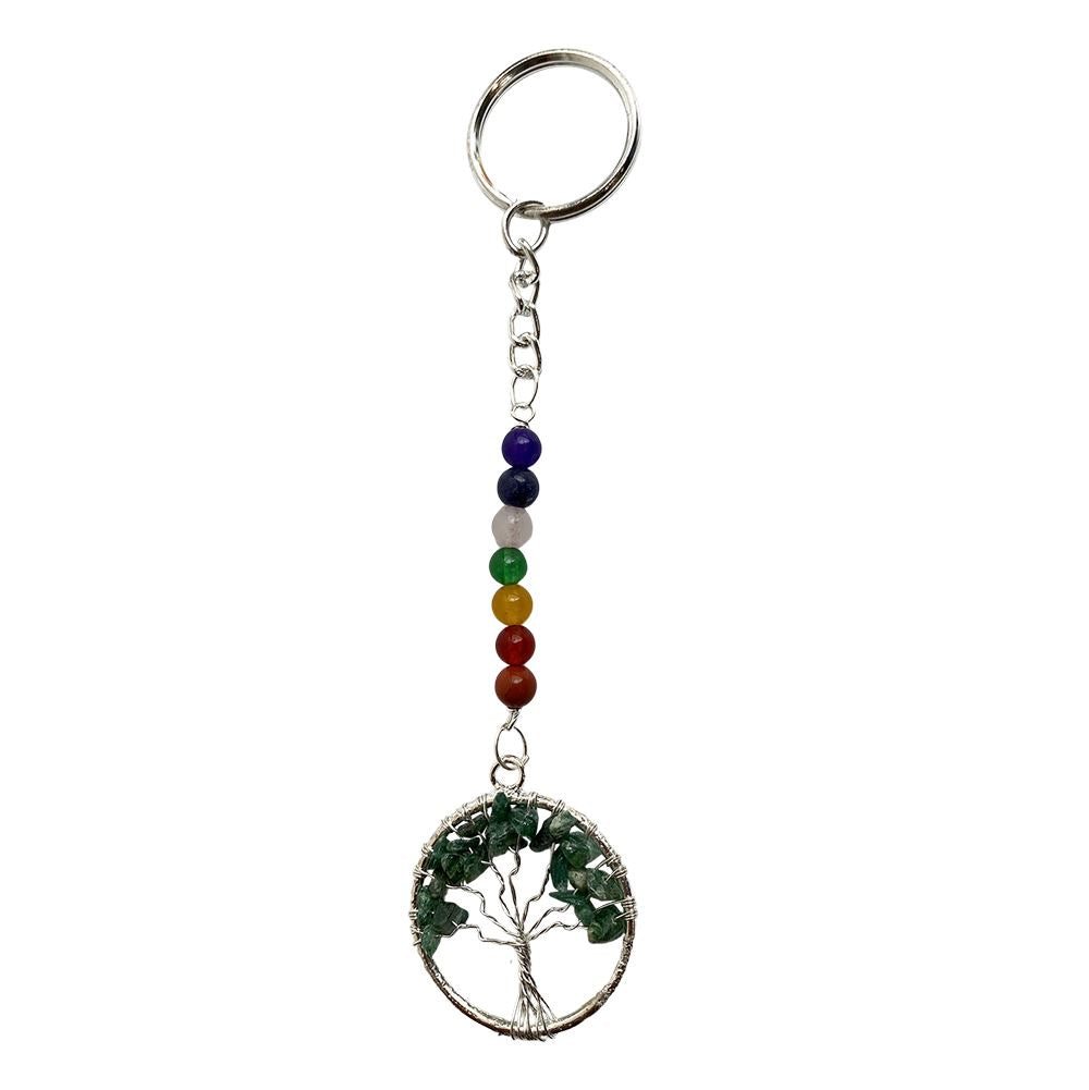 Tree of Life Keychain. These handmade keychains are made of gemstones, wrapped as a tree � wires as the branches, stones as the leaves. It symbolizes the interconnection of life and the flow of creation. It will infuse abundance and prosperity into your life. Energetically influence the senses, balance the body, mind and soul, bring about an opportunity for change, serenity, and clarity, help increase the ability of concentration and awareness. Attach to keys, backpack, tote bags and other portable items. 15x3cm.