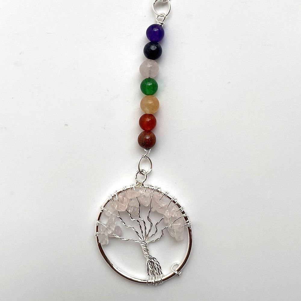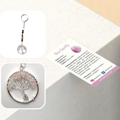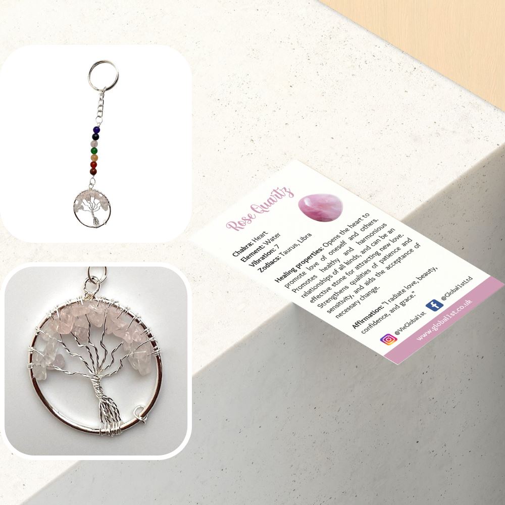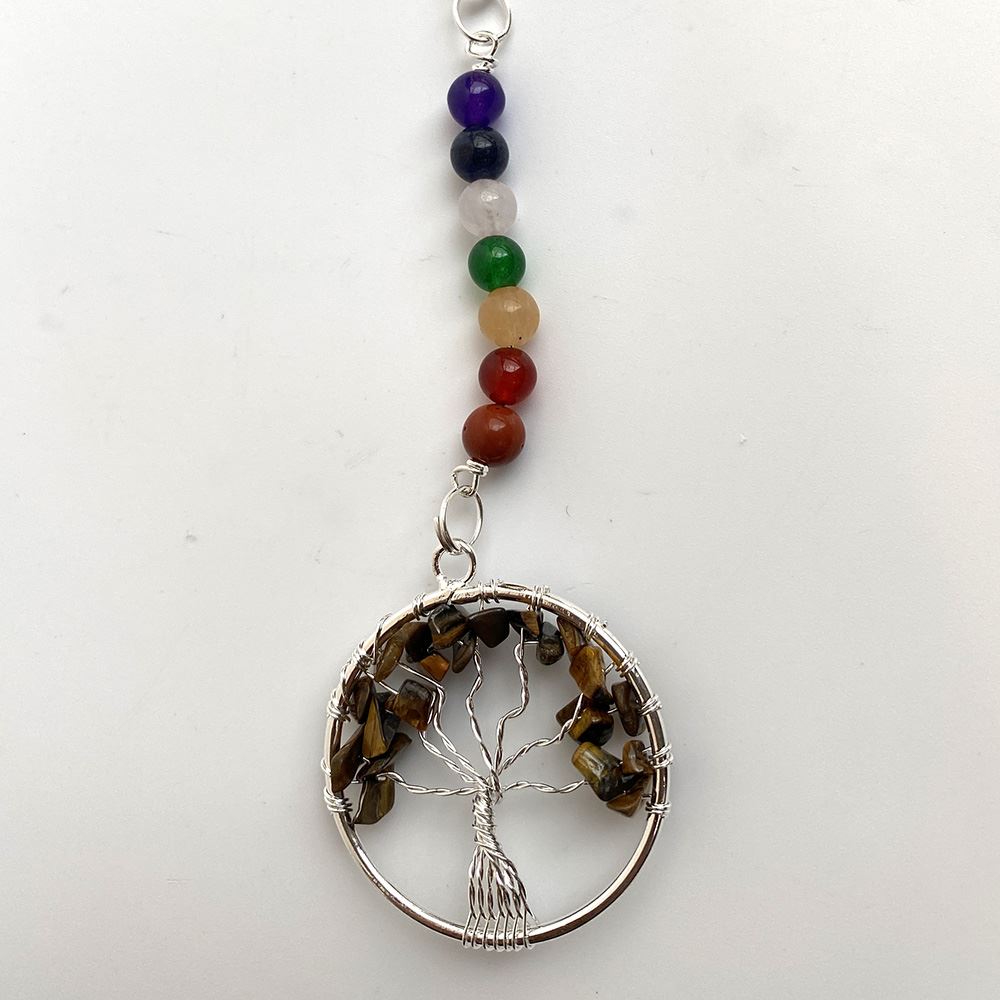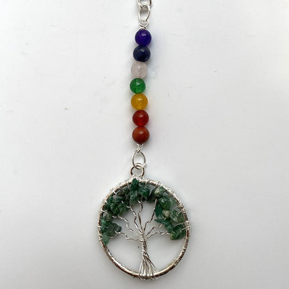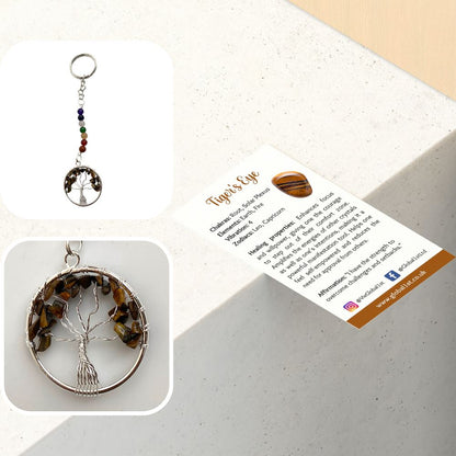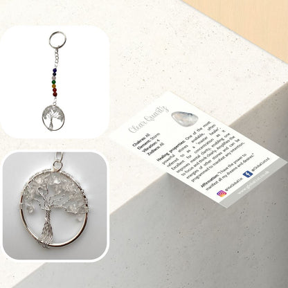 Tree of Life Keychain. These handmade keychains are made of gemstones, wrapped as a tree � wires as the branches, stones as the leaves. It symbolizes the interconnection of life and the flow of creation. It will infuse abundance and prosperity into your life. Energetically influence the senses, balance the body, mind and soul, bring about an opportunity for change, serenity, and clarity, help increase the ability of concentration and awareness. Attach to keys, backpack, tote bags and other portable items. 15x3cm.