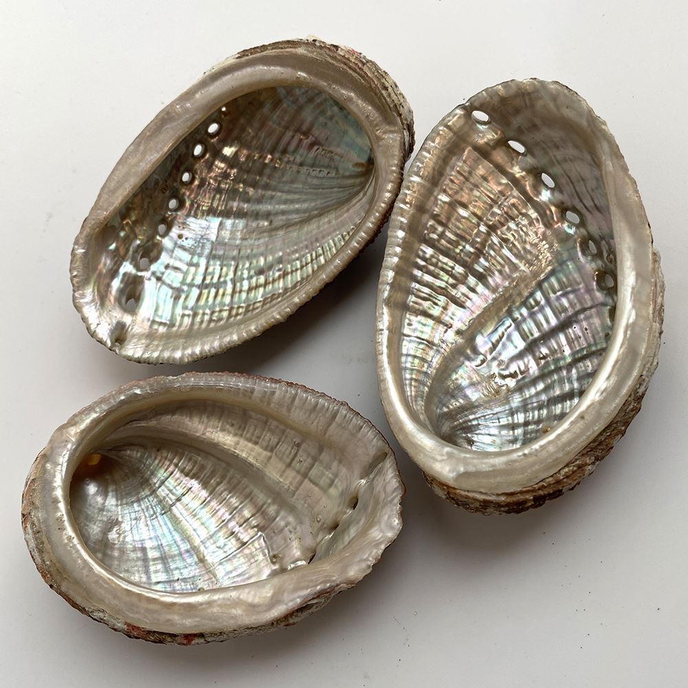 Ethically sourced Abalone Shells in various sizes (5-8cm, 10cm, 15cm, Giant 16x14cm). Ideal for holistic shops, decor boutiques, or wellness centres. Perfect for sage burning and decorative displays.