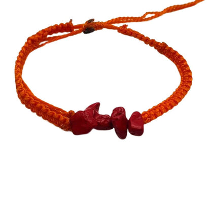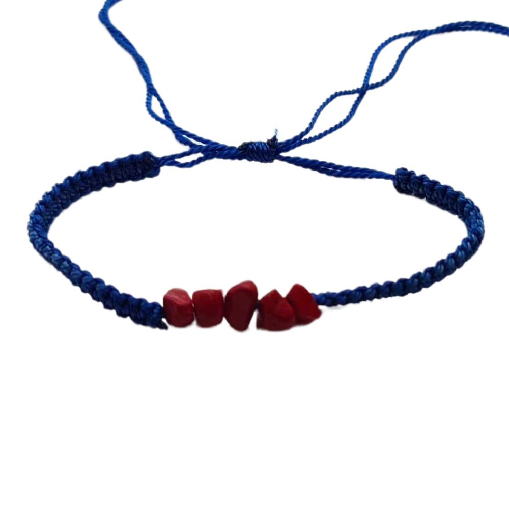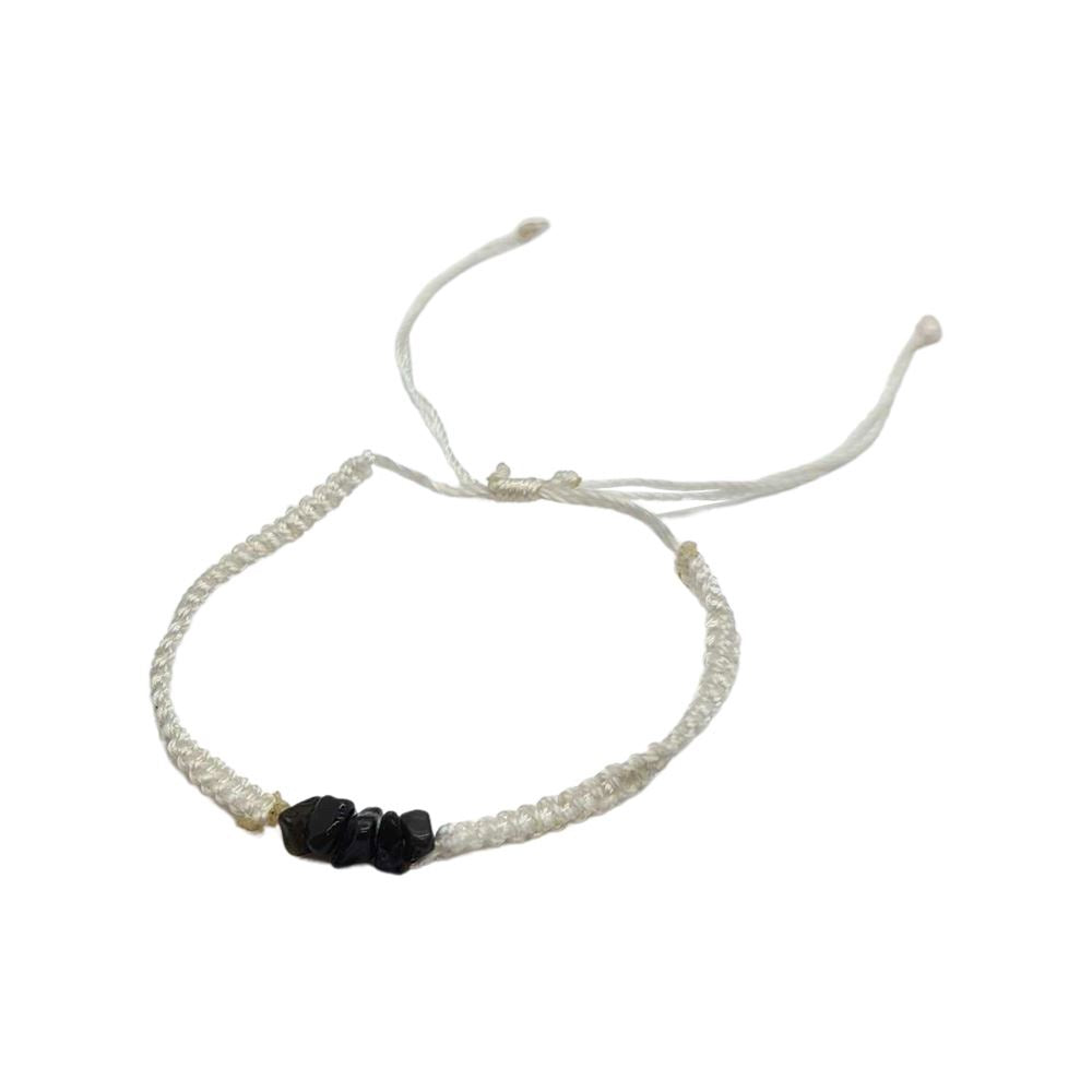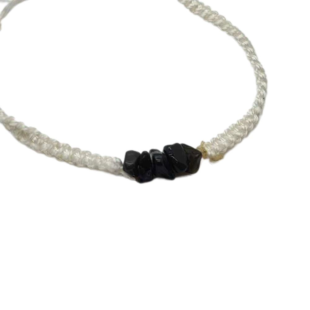 Hand-knitted waterproof beach bracelet with adjustable slip knot. Durable, lightweight and suitable for wrist or ankle. Available in multiple colours and styles. Ideal for summer collections.