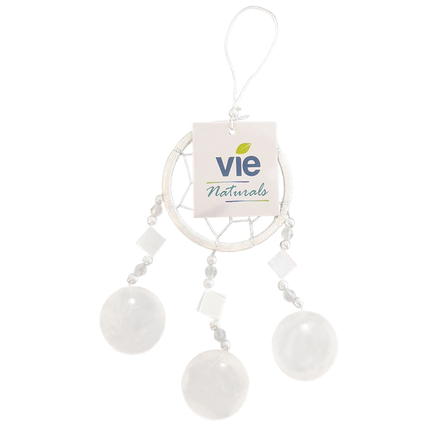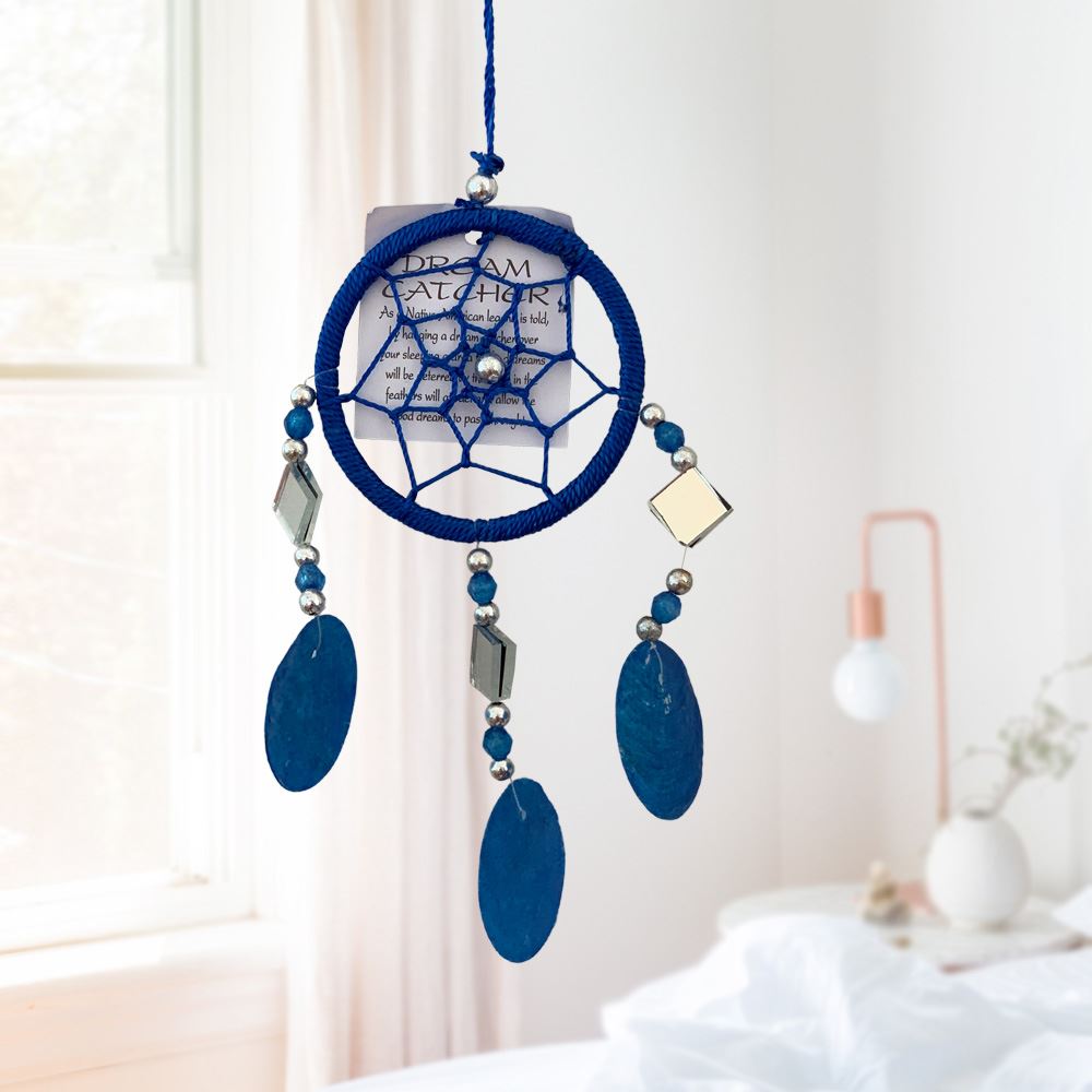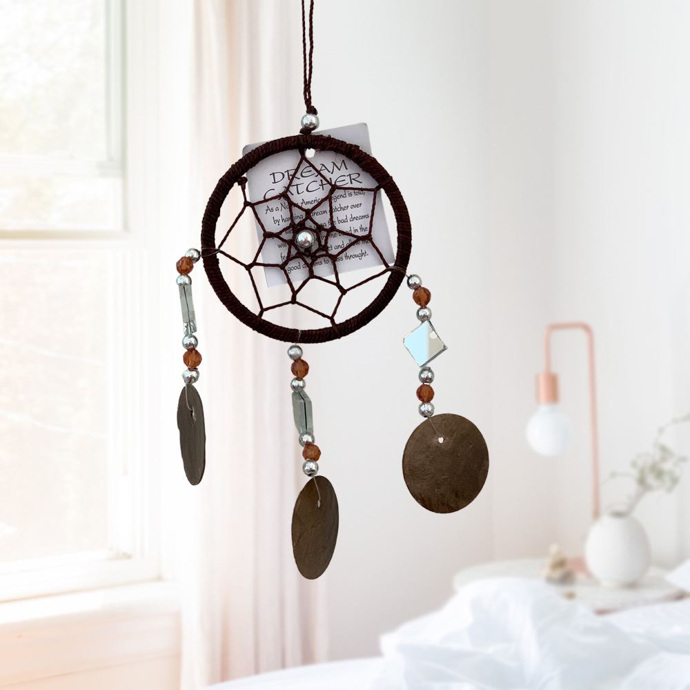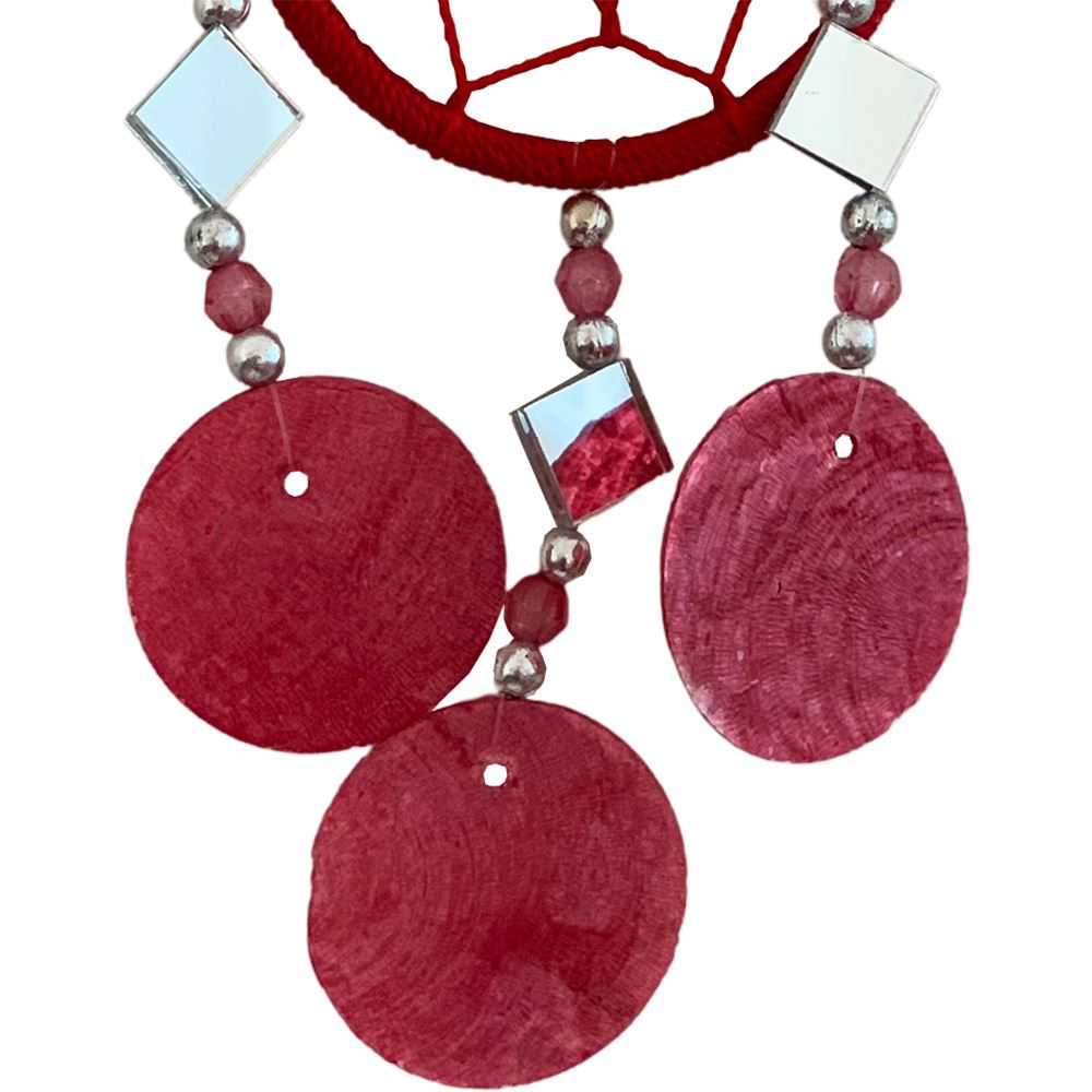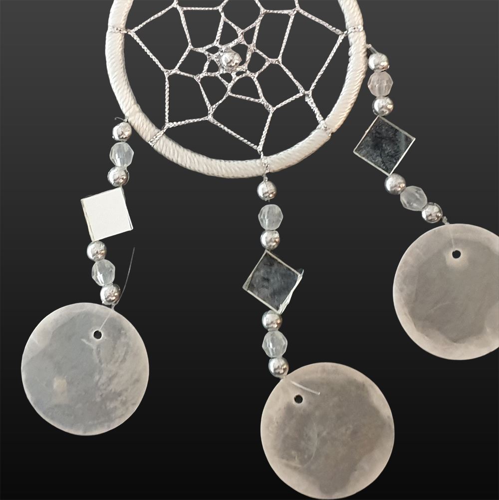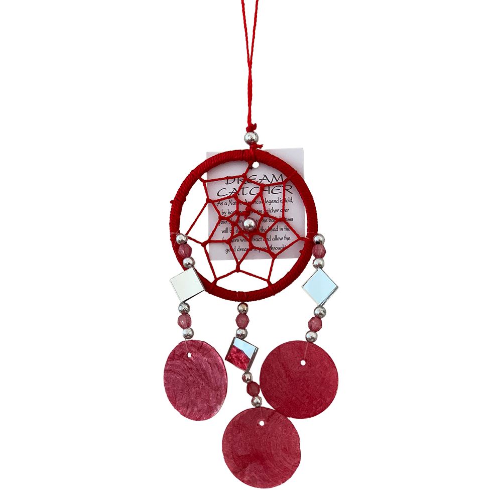 The Capiz Dream Catcher is a spiritual tool used to help assure pleasant dreams to those that sleep under it. This handcrafted dream catcher, enhanced with beautiful beadwork, features a 6 cm ring hand wrapped in the suede cord. Only good dreams can pass through while the bad dreams are caught in the webbing and destroyed by the first rays of the morning light.