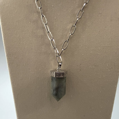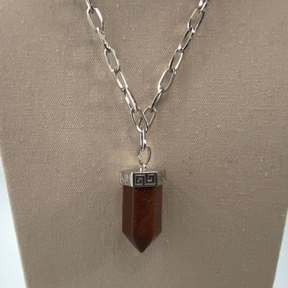 Chunky Point Pencil Pendant, 3.5x1.5x1.5cm, is perfect for positive energy and peace of mind. Made of gemstone and the chain is made of alloy — durable and reliable material, friendly and safe for your skin. A perfect pendant will make your meditation area calm, and spiritual, allowing you to meditate more energetically. We offer different options of gemstones, choose one according to your mood and dressing style, good for daily wear. All these items are handmade so the size and colour of the actual item you received could be slightly different.