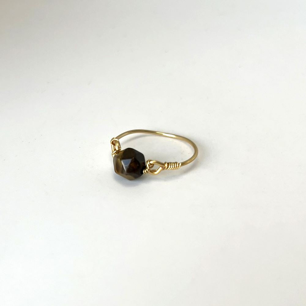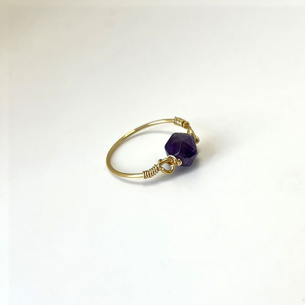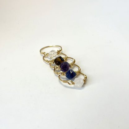 Copper Wire Starcut Ring with Assorted Gemstone, UK Size U