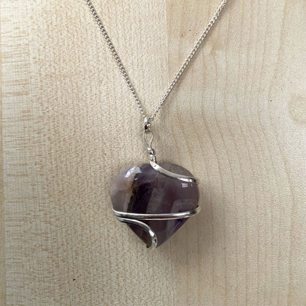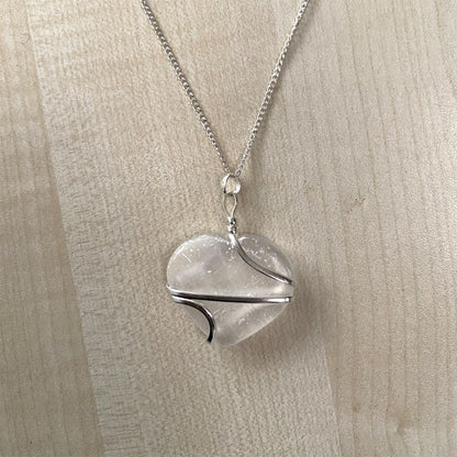Crystal Heart Wire Wrap Pendant, 3cm. A perfect pendant will make your meditation area calm, spiritual, allowing you to meditate more energetically. Crystals formed into the shapes of a heart help to activate the Heart Chakra and emanate good vibrations. The 4th chakra meanings relate to the feelings of compassion, peace and unconditional love. These assorted heart-shaped healing gemstones have varied healing functions, which can make you relaxed, bring peace and harmony, allow energy to flow through the heart, keep your thoughts positive to overcome difficulties and bring confidence. We offer different options of gemstones, choose one according to your mood and dressing style, good for daily wear.