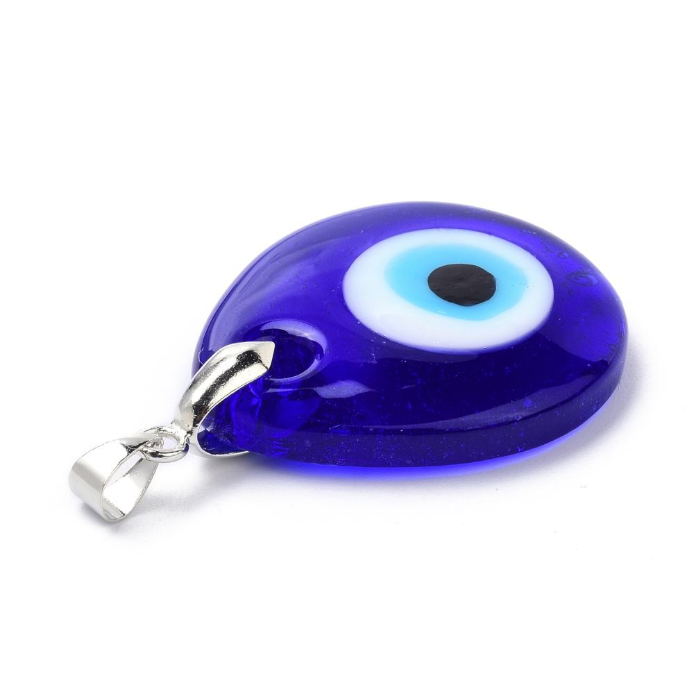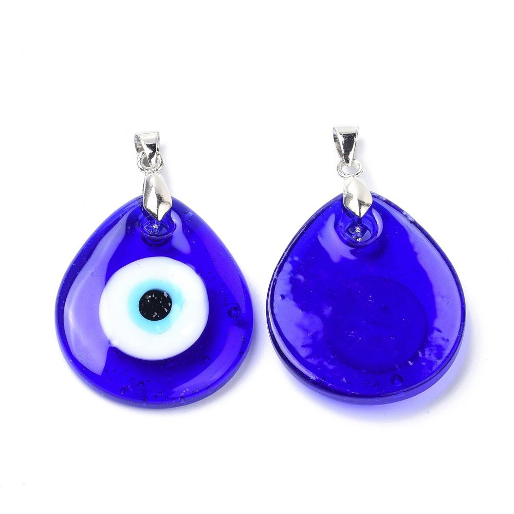 Evil Eye Pendant, Teardrop. Size: about 1.16 inch (29.5mm) wide, 1.38 inch (35mm) long, 0.22 inch (5.5mm) thick, hole: 0.16x0.24 inch (4x6mm). The Evil Eye has been found throughout thousands of years of history across cultures. The symbol, most often depicted as four concentric circles in the shape of an eye, is used to ward off variations of evil intentions. Wearing any piece of jewellery with the Evil Eye protects the wearer while bringing them good luck.