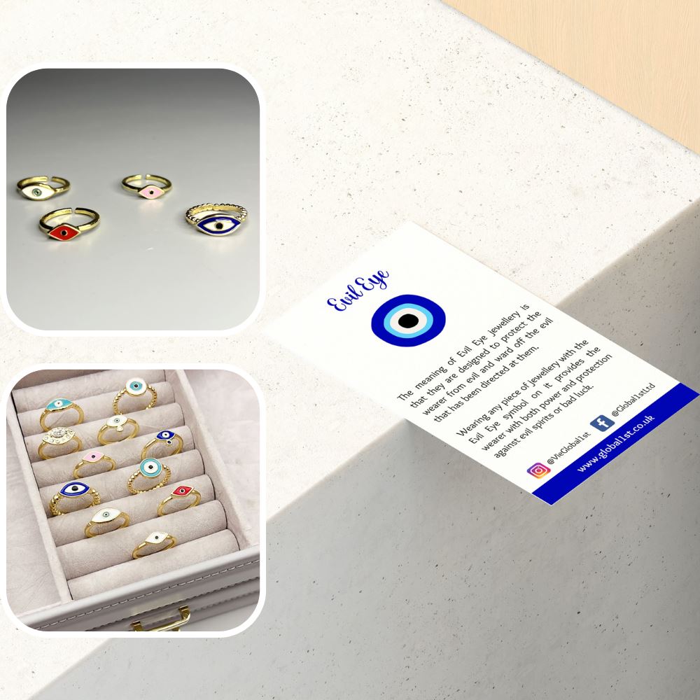 Protect yourself from negative energy with our stunning Evil Eye Ring. This captivating piece of jewelry features the iconic Evil Eye symbol, believed to ward off evil and bring good fortune. Made from high-quality materials, this ring combines style and spiritual significance. It serves as a fashionable accessory while providing you with a sense of protection and positive energy. Whether worn for everyday elegance or special occasions, our Evil Eye Ring is a beautiful reminder of the power of positivity.