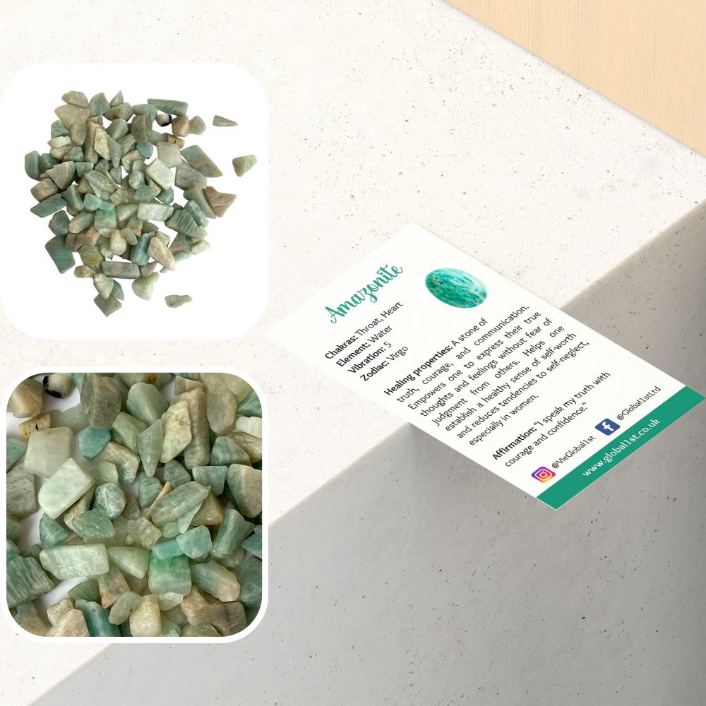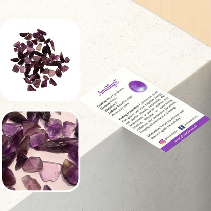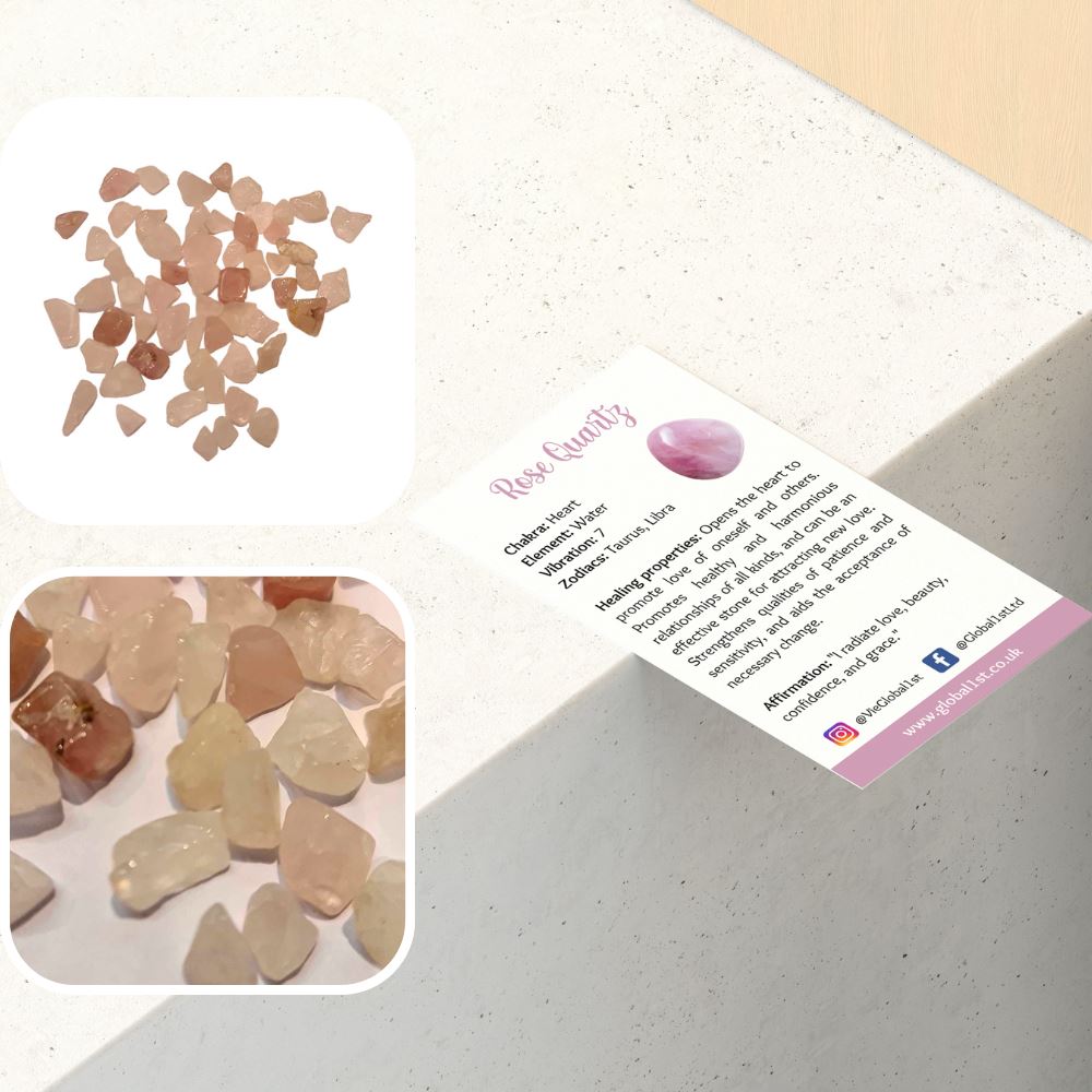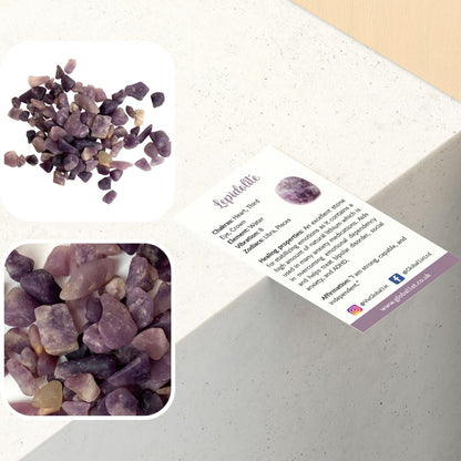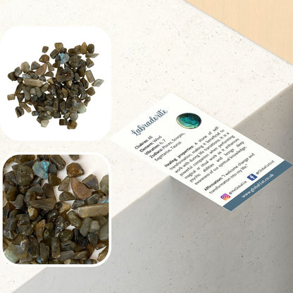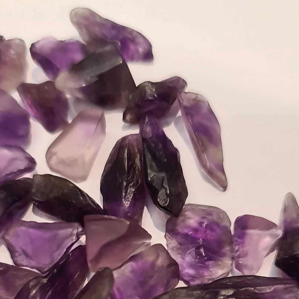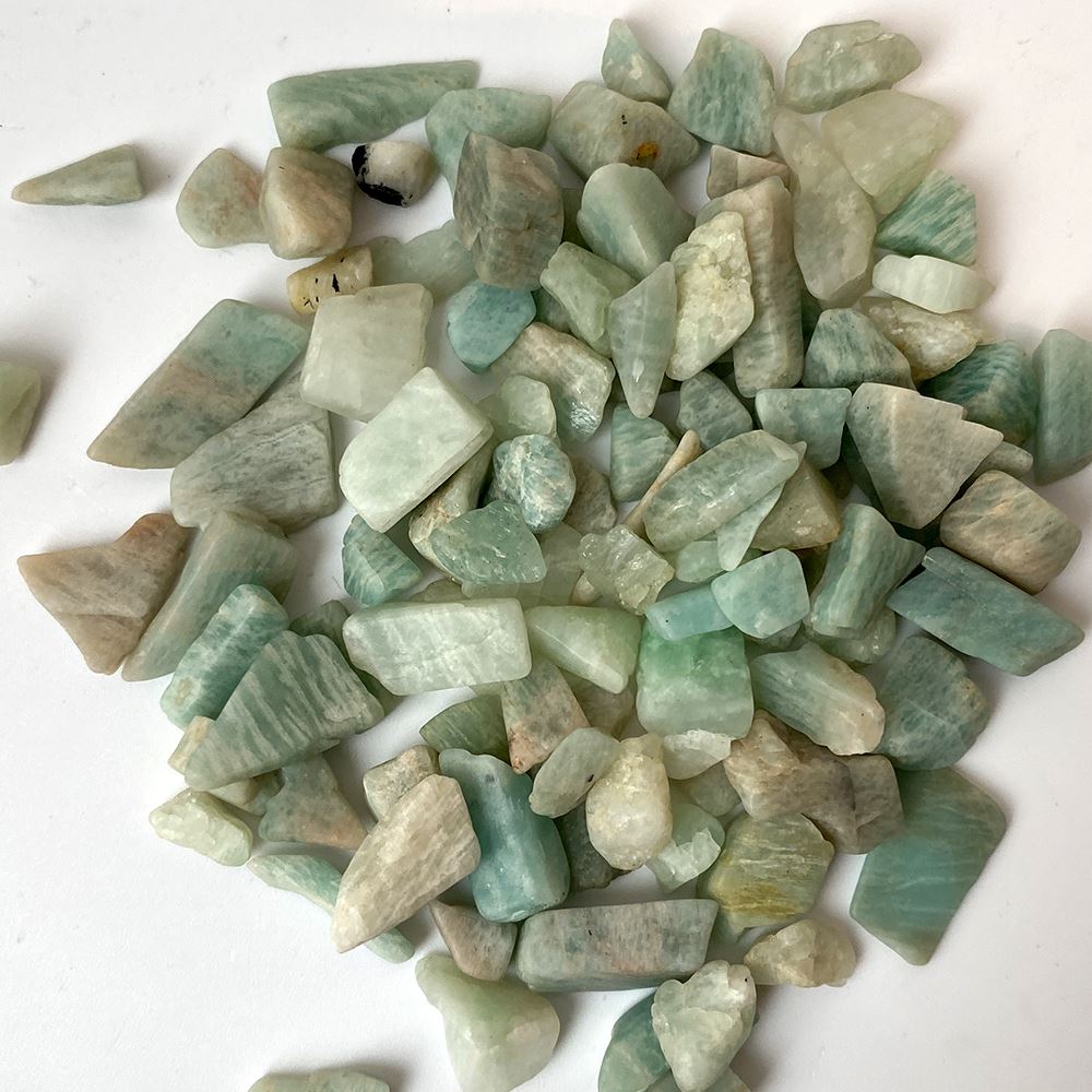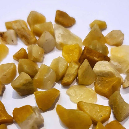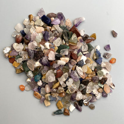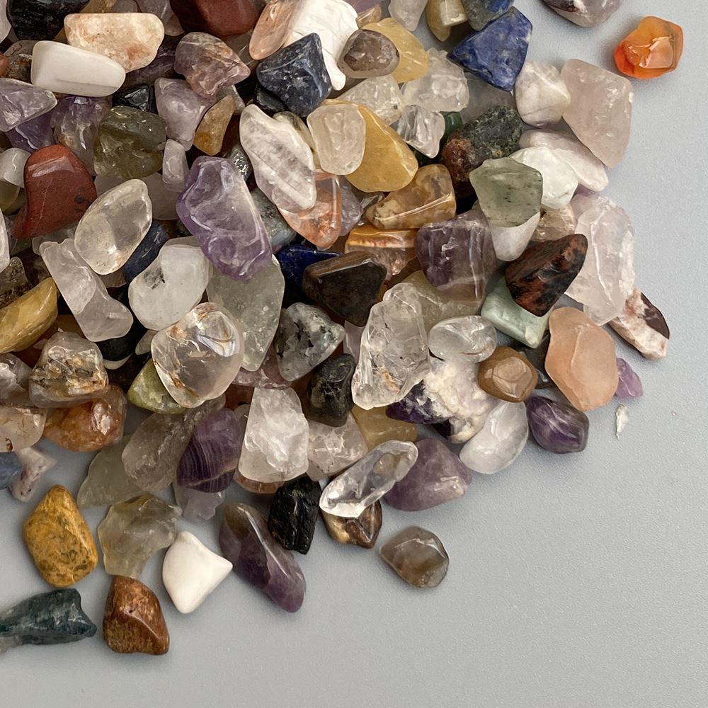 Undrilled gemstone chips sold in 250g packs. Each chip ranges from 5-12mm and comes in natural shapes and colours. Available in a variety of gemstones. Ideal for crafts, decor, and energy work.