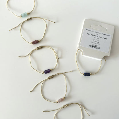 Gemstone Column Bracelet featuring a single polished bead on an adjustable cord. A minimalist, hand-assembled piece ideal for versatile jewellery collections.